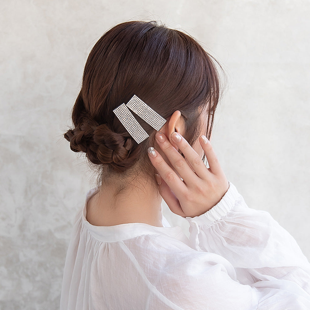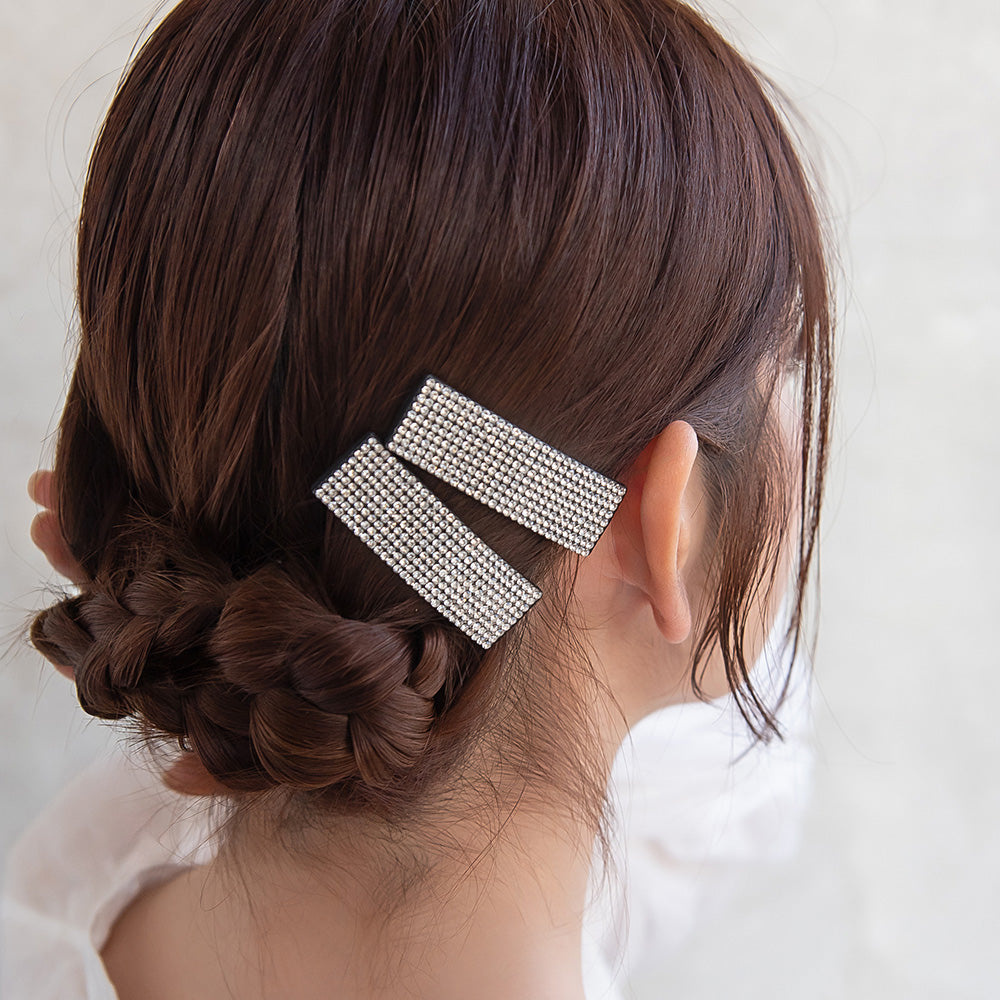 st0400ラインストーンを敷き詰めたシンプルなヘアピン2個セット。丁度いいサイズ感でアレンジにもピッタリ◎