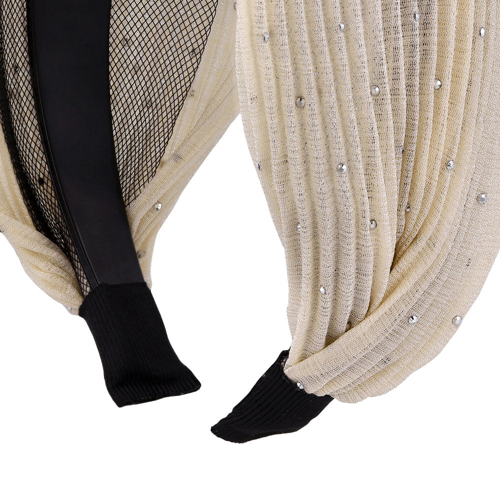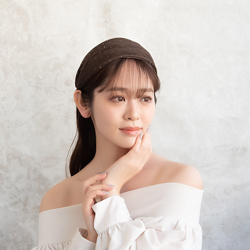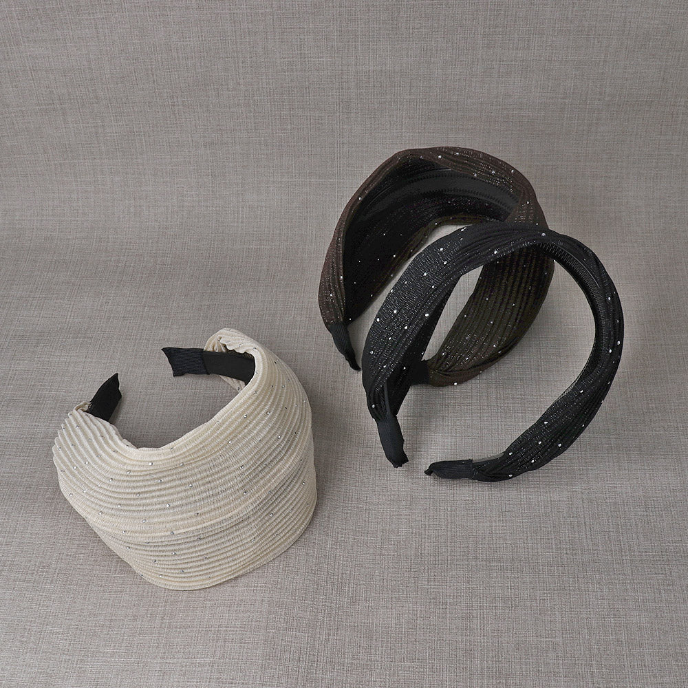 tk0313華やかなビジュアルのワイドカチューシャ。レディに仕上がる品の良さ。ぱっと華やぐ上品なデザイン、小さなドットのストーンの光りの粒がアクセントに。