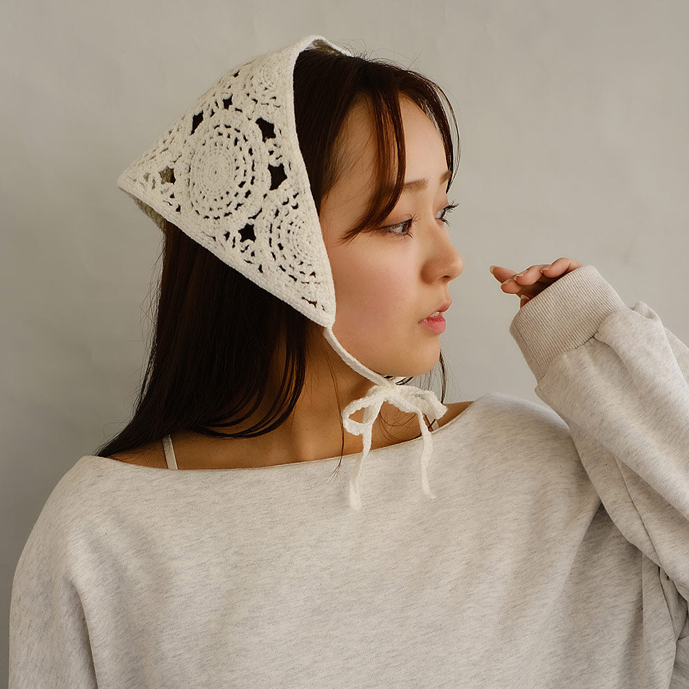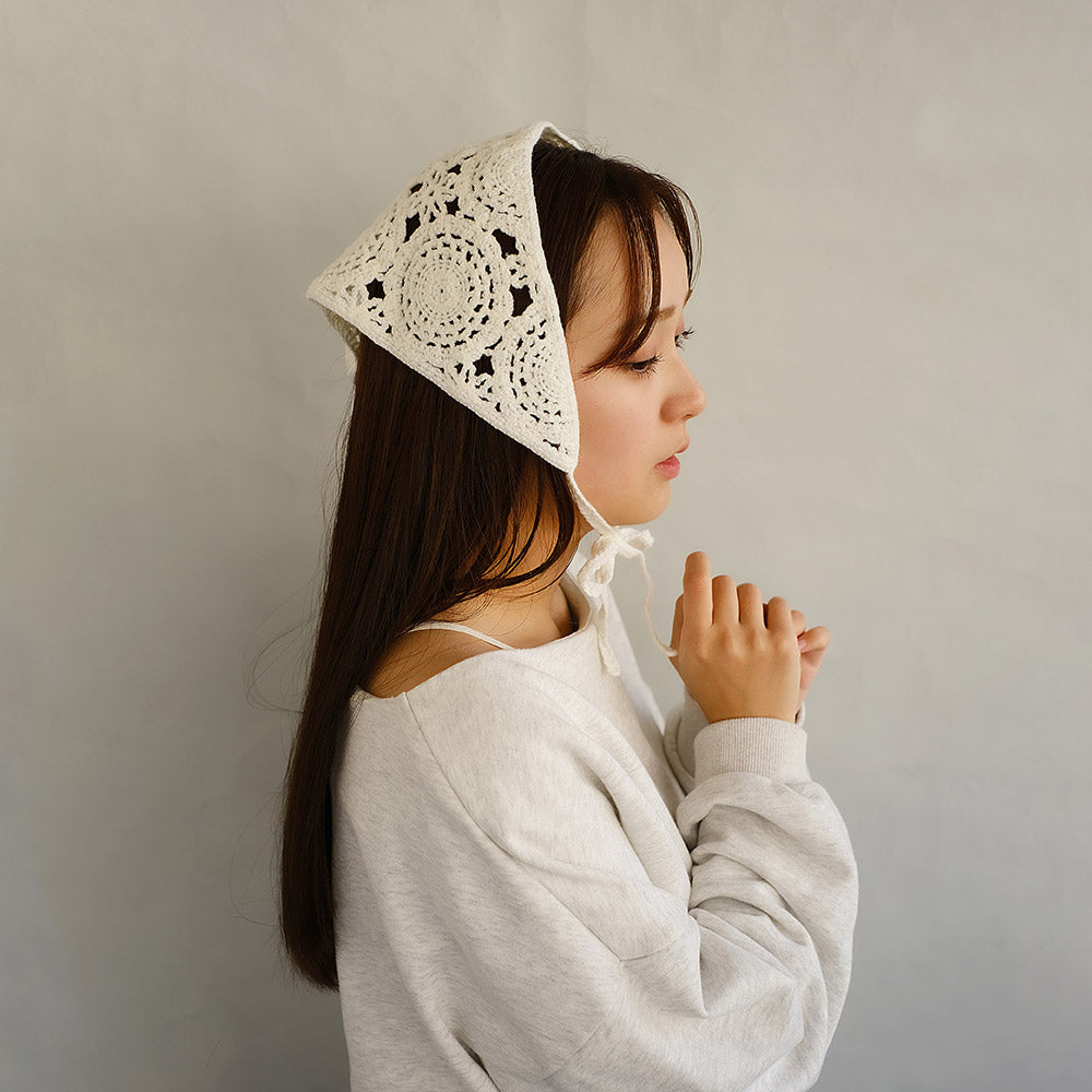 ヘッドドレス フラワー 花 サークル 柄 クロシェ編み かぎ編み ヘッドスカーフ バブーシュカ