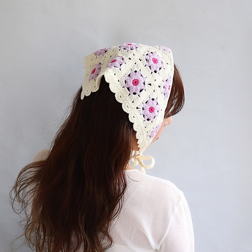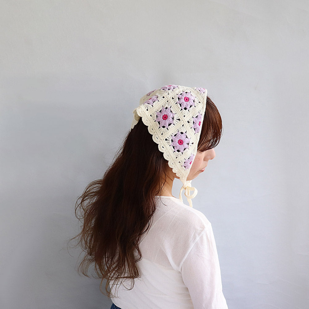ヘッドドレス カラー フラワー 花 スクエア 柄 スカラップ クロシェ編み かぎ編み ヘッドスカーフ バブーシュカ
