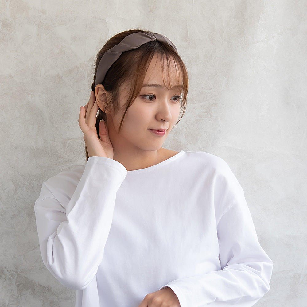 tk0356シンプルながらツイストがオシャレに決まるカチューシャ。