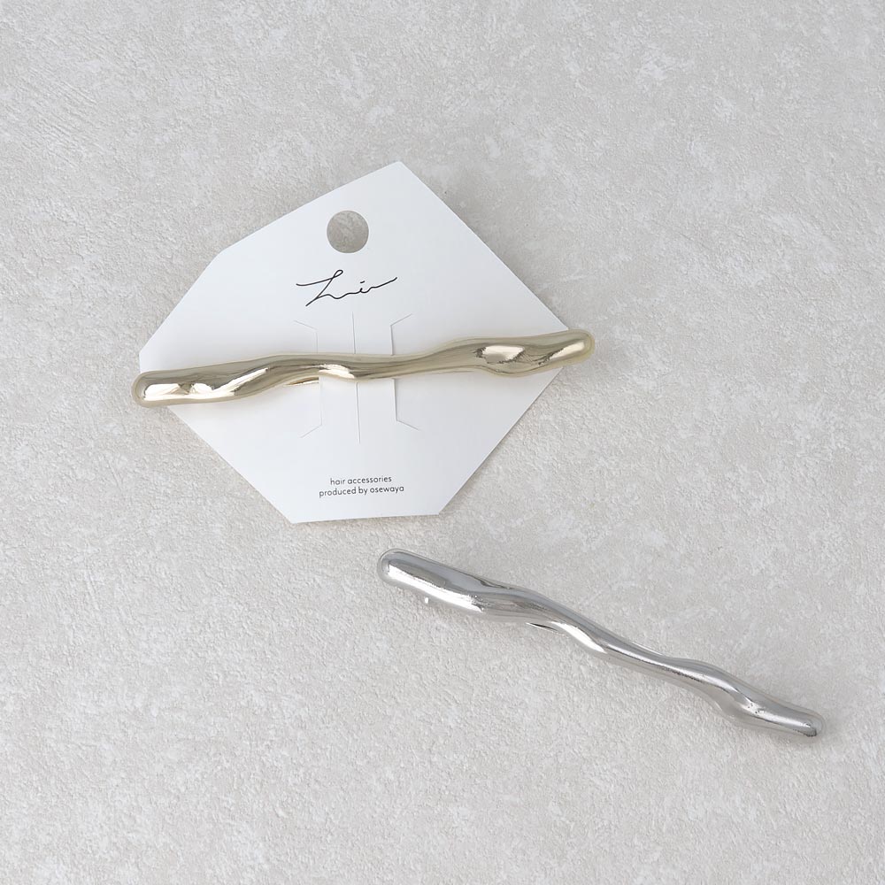 バレッタ メタル ウェーブ ライン 細身 スリムバレッタ