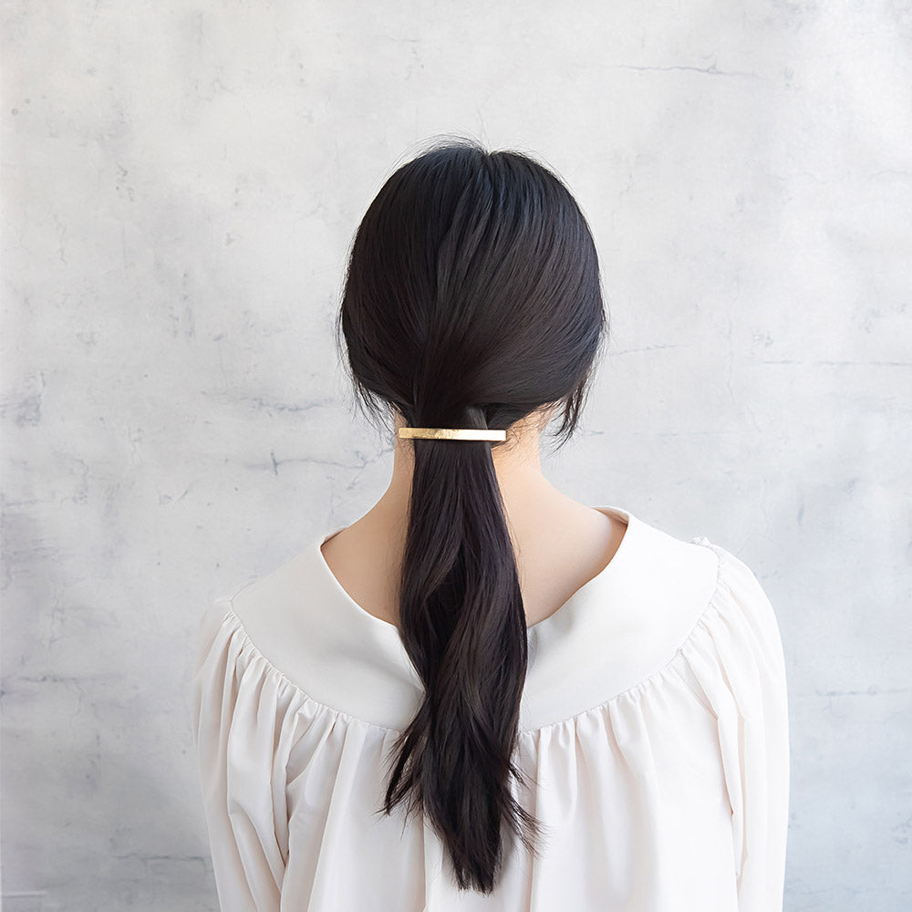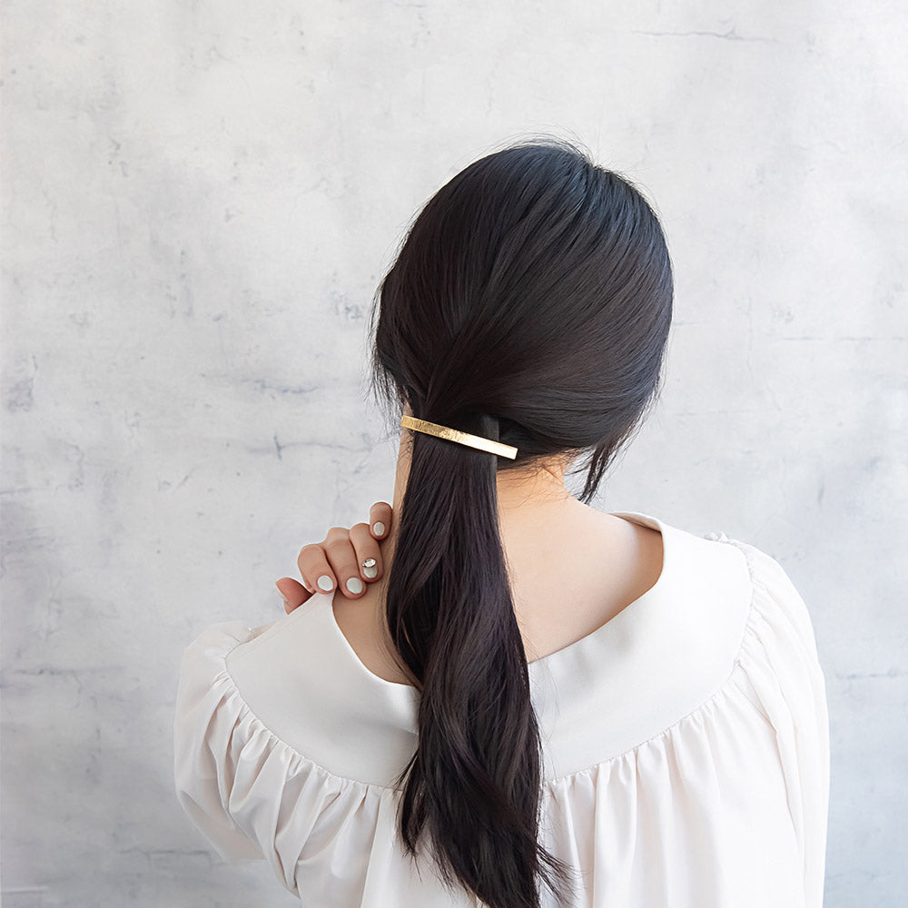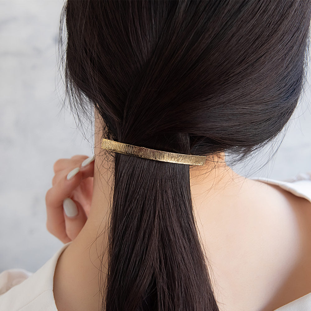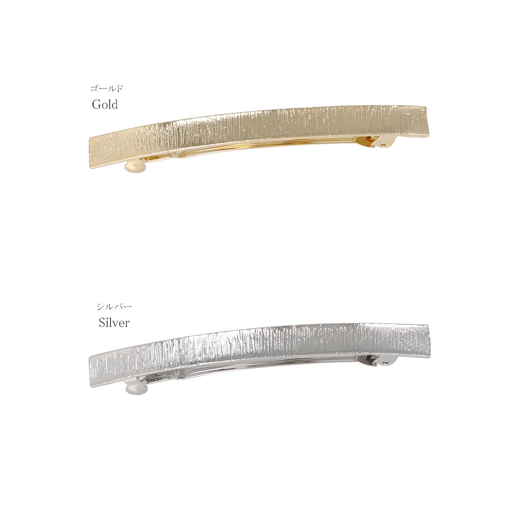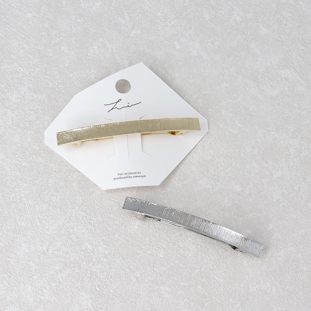 バレッタ メタル ライン テクスチャ レクタングル スリムバレッタ