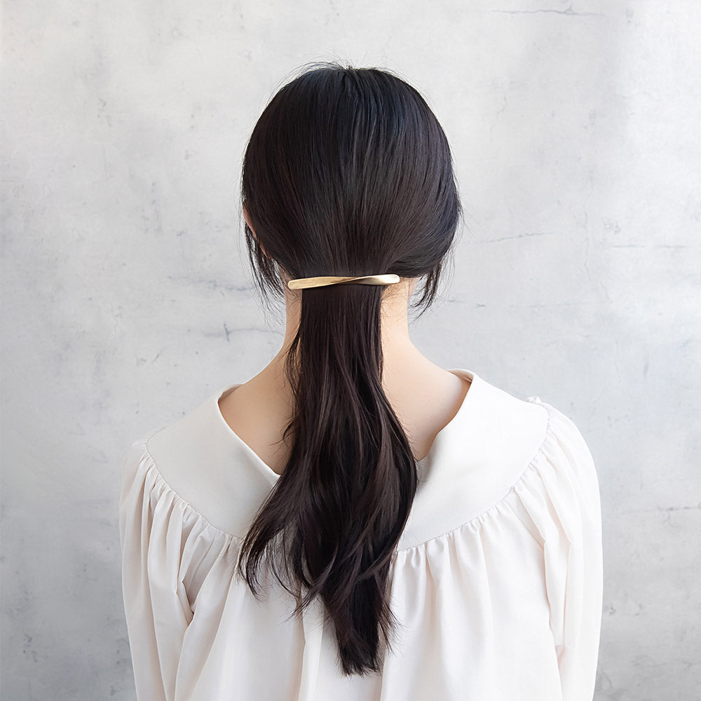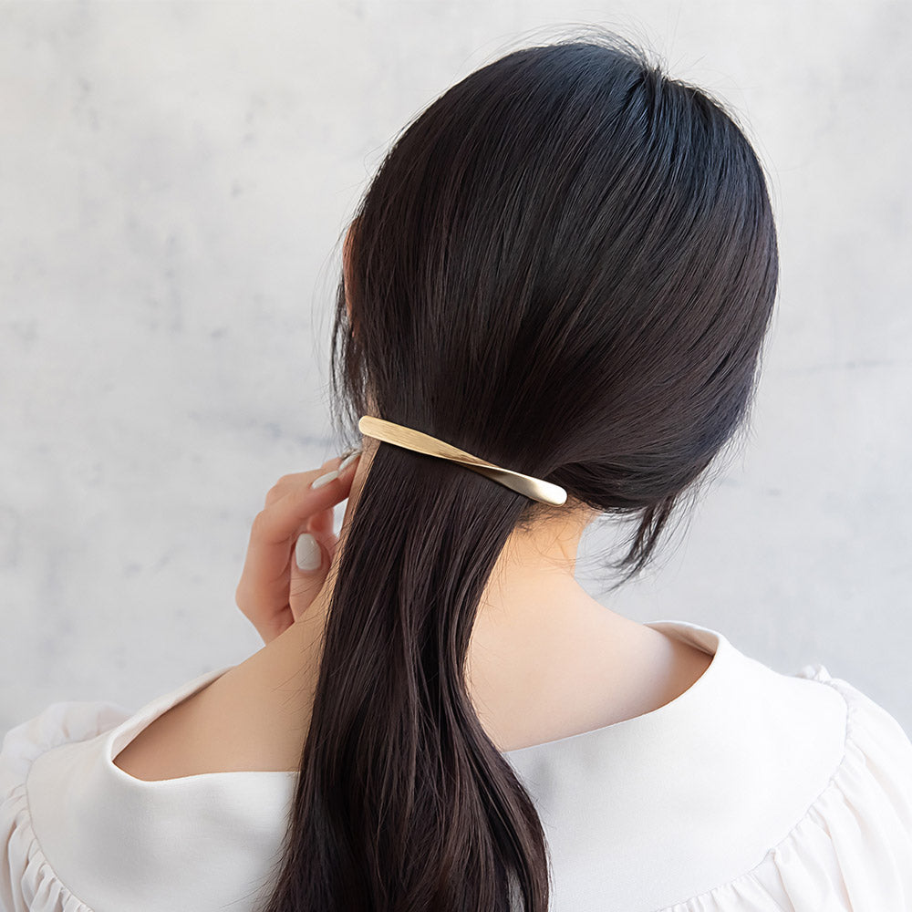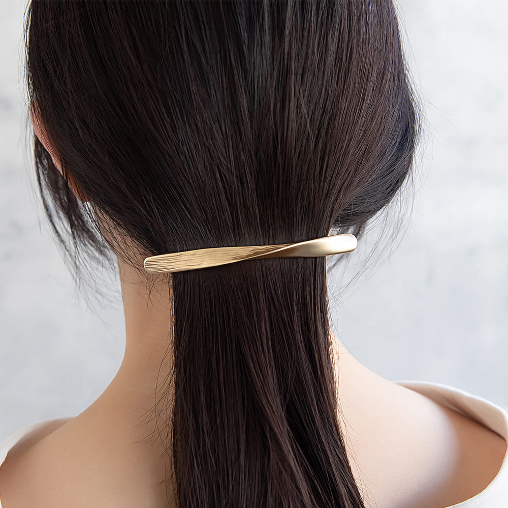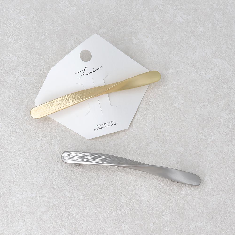 バレッタ マット メタル ツイスト ライン テクスチャ ハーフ スリムバレッタ