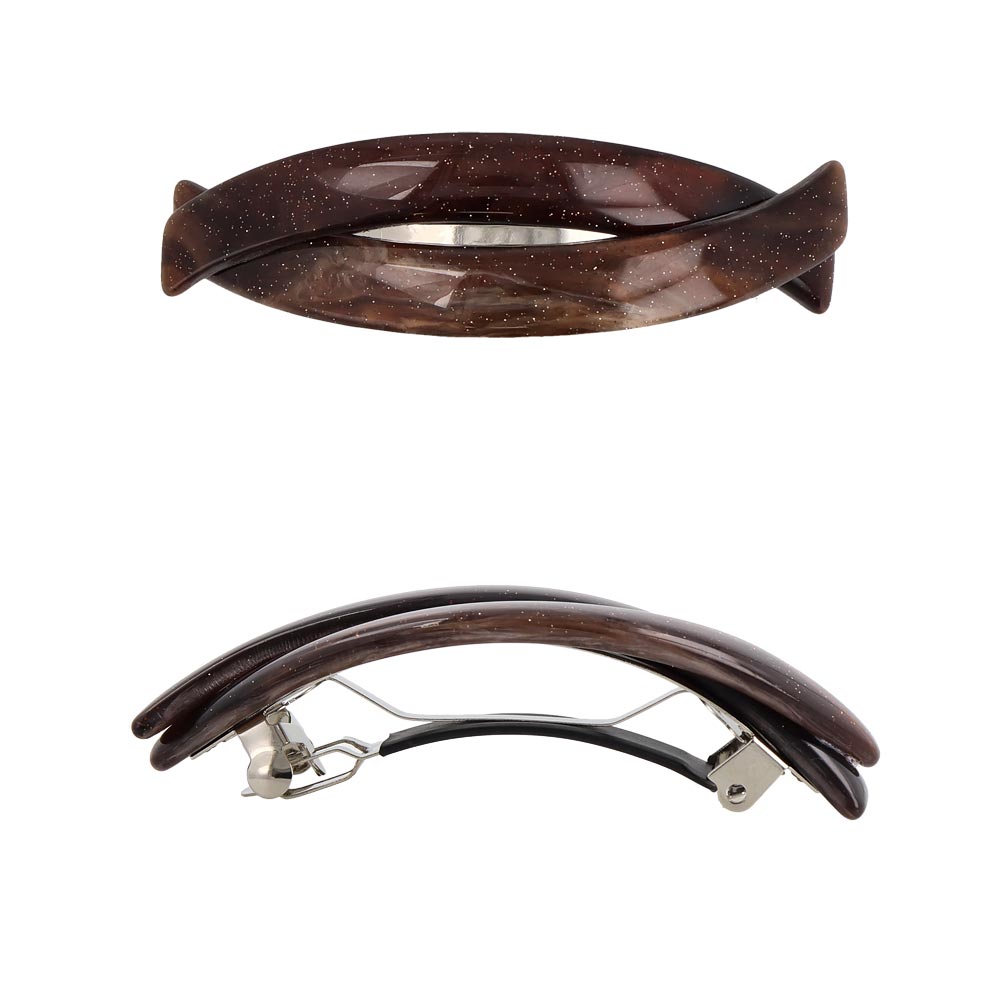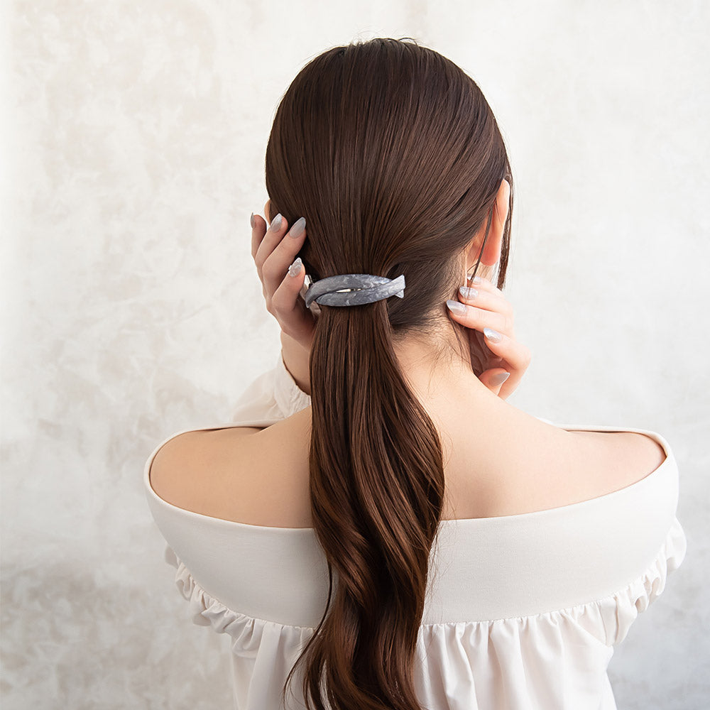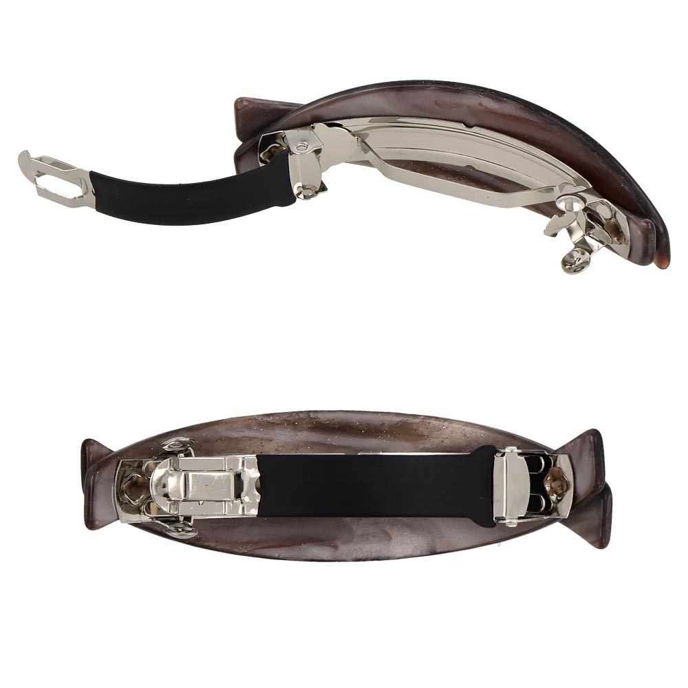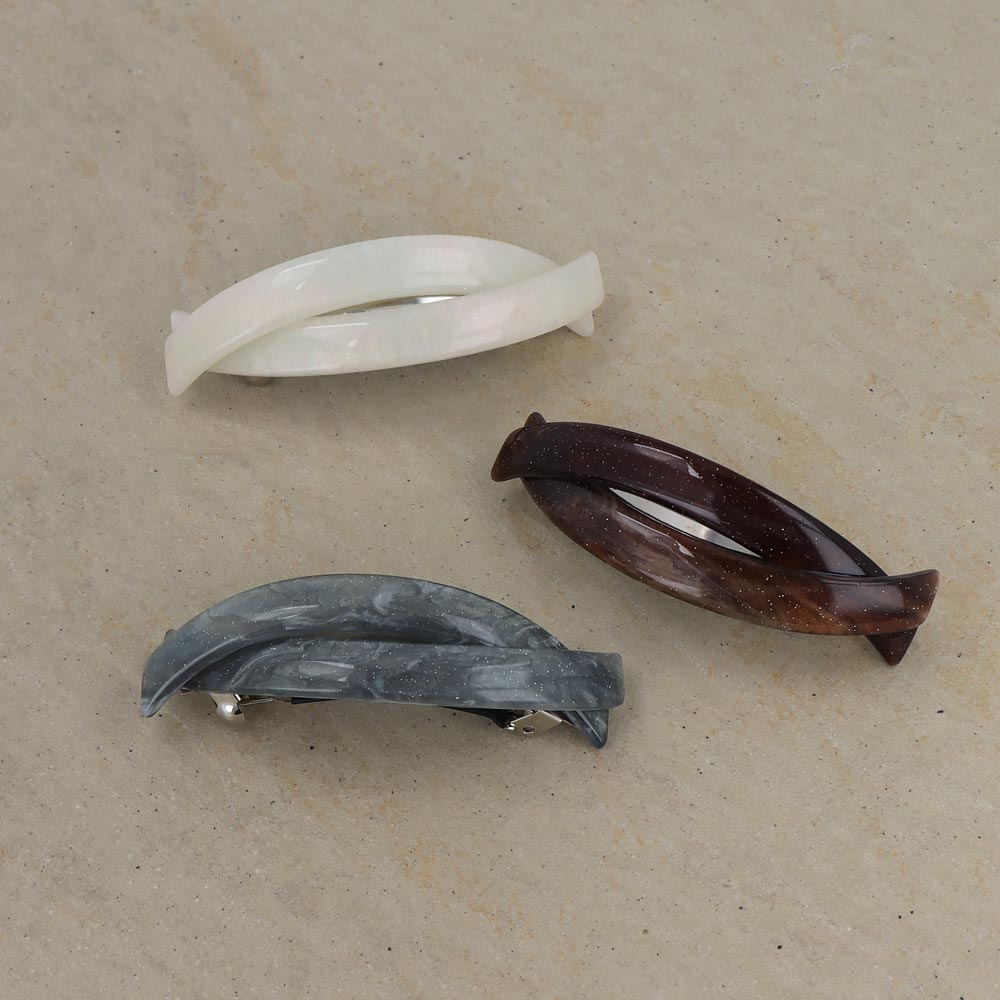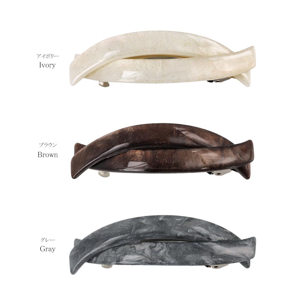 バレッタ アクリル マーブル カラー ラメ カーブ ライン クロス すべり止め付き