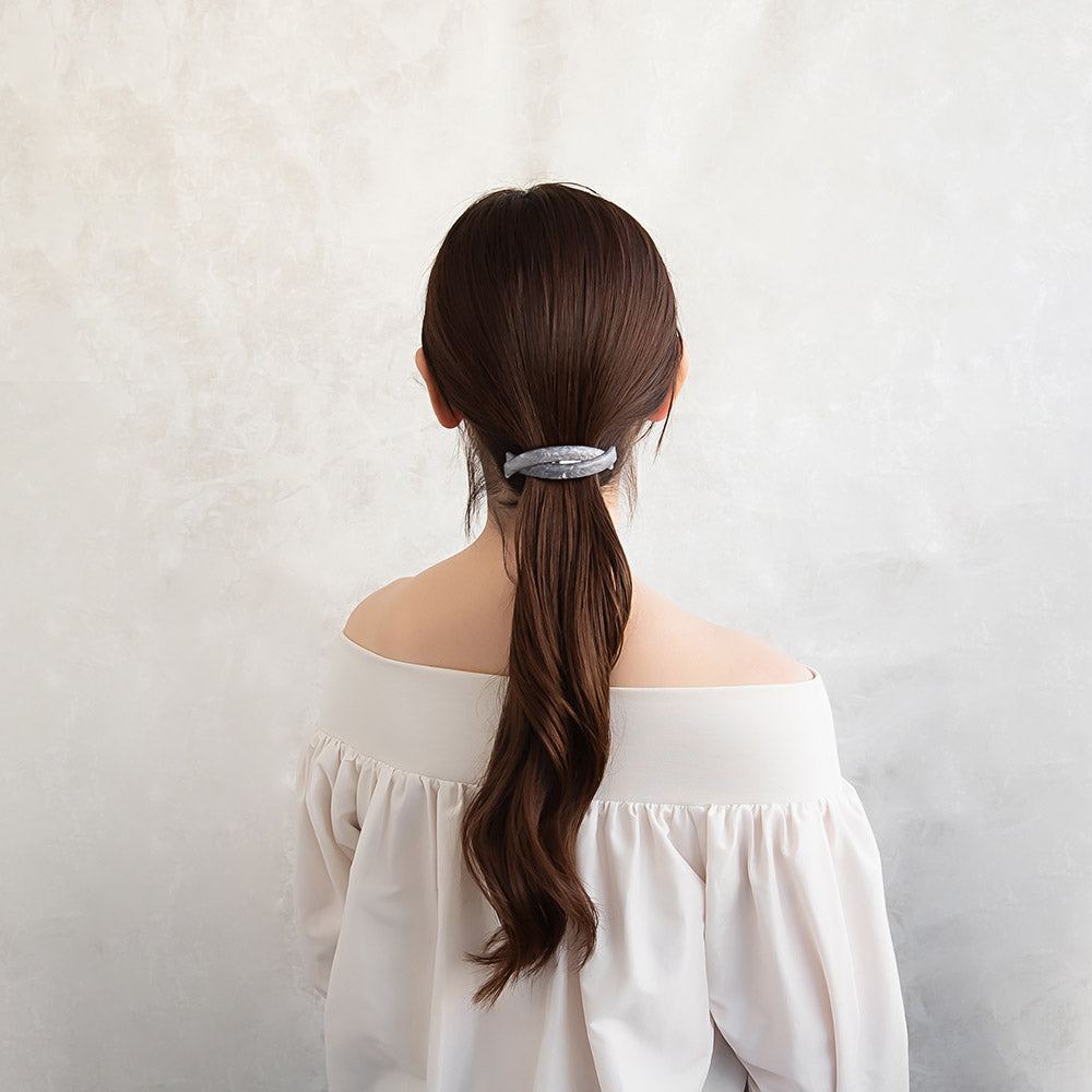 vt0370シンプルながらもきらびやかなラメが大人な華やかさを醸し出してくれる、上品なカラーのバレッタ。