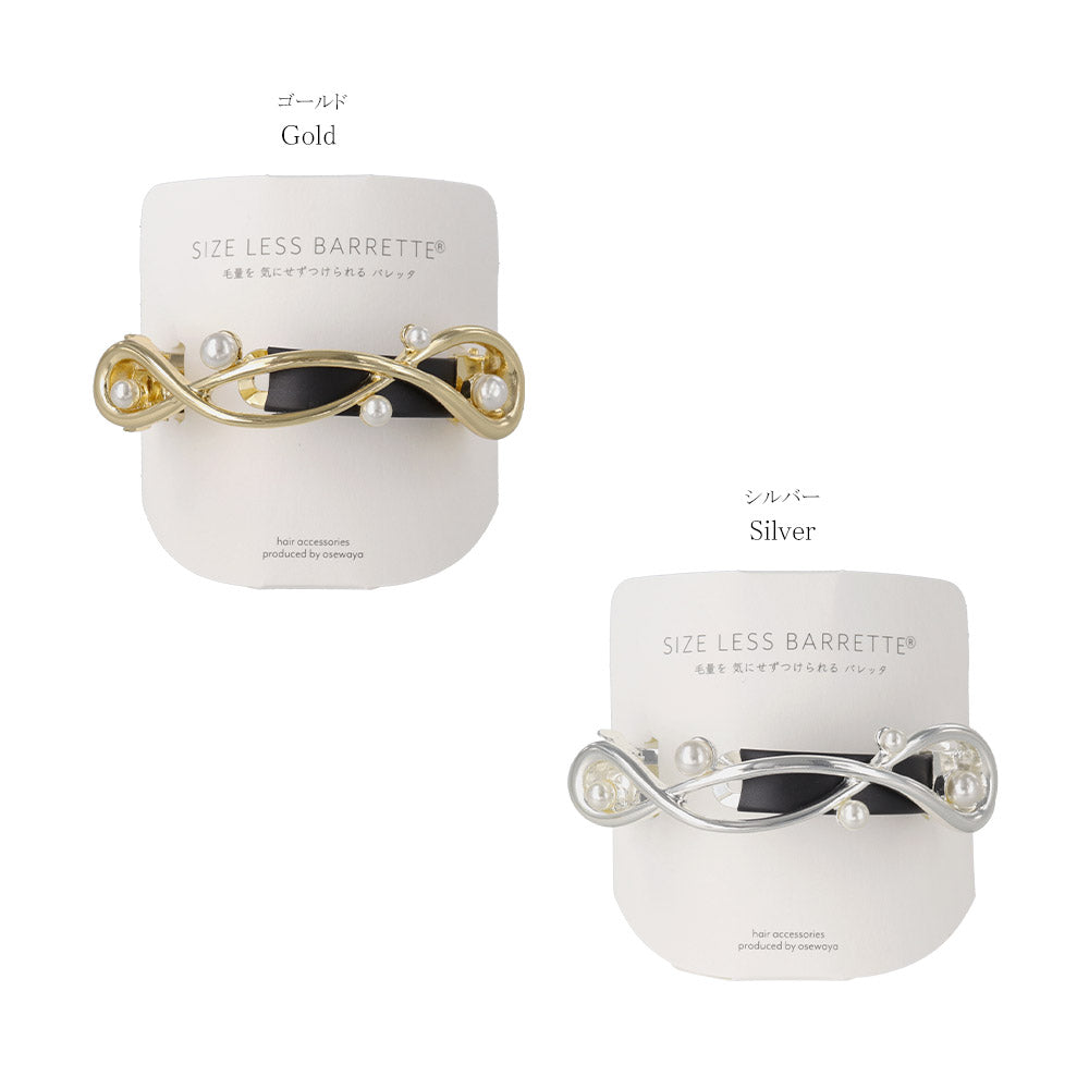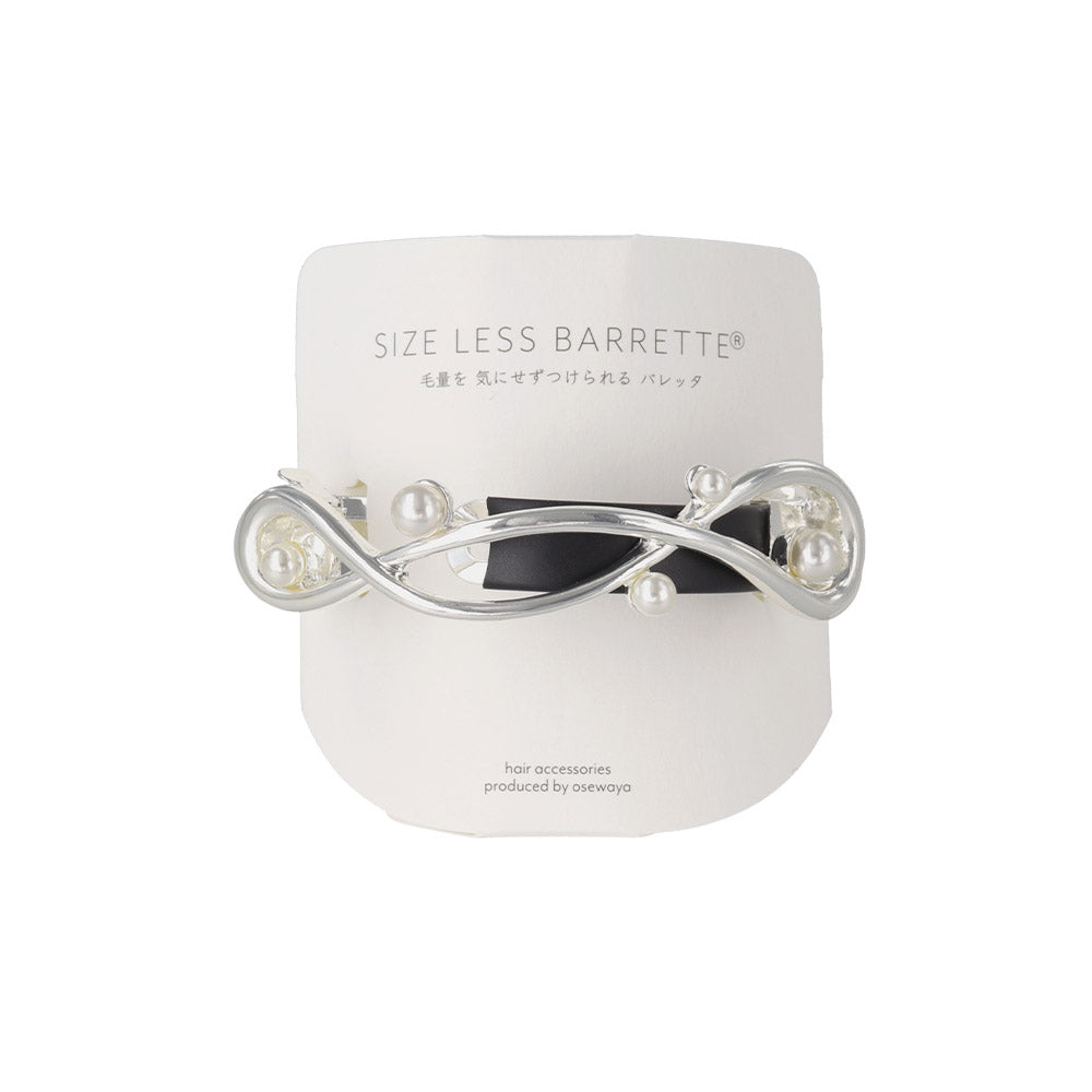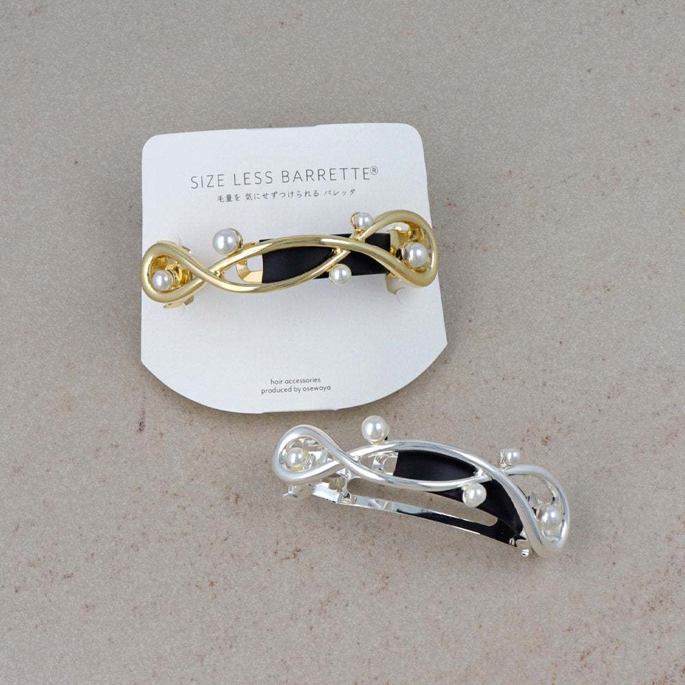 バレッタ ニッケルフリー メタル ループ クロス ライン ランダム パール すべり止め付き サイズレスバレッタ