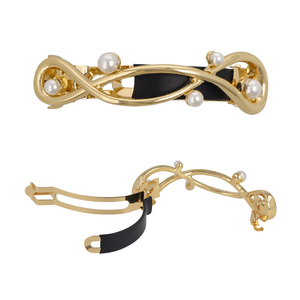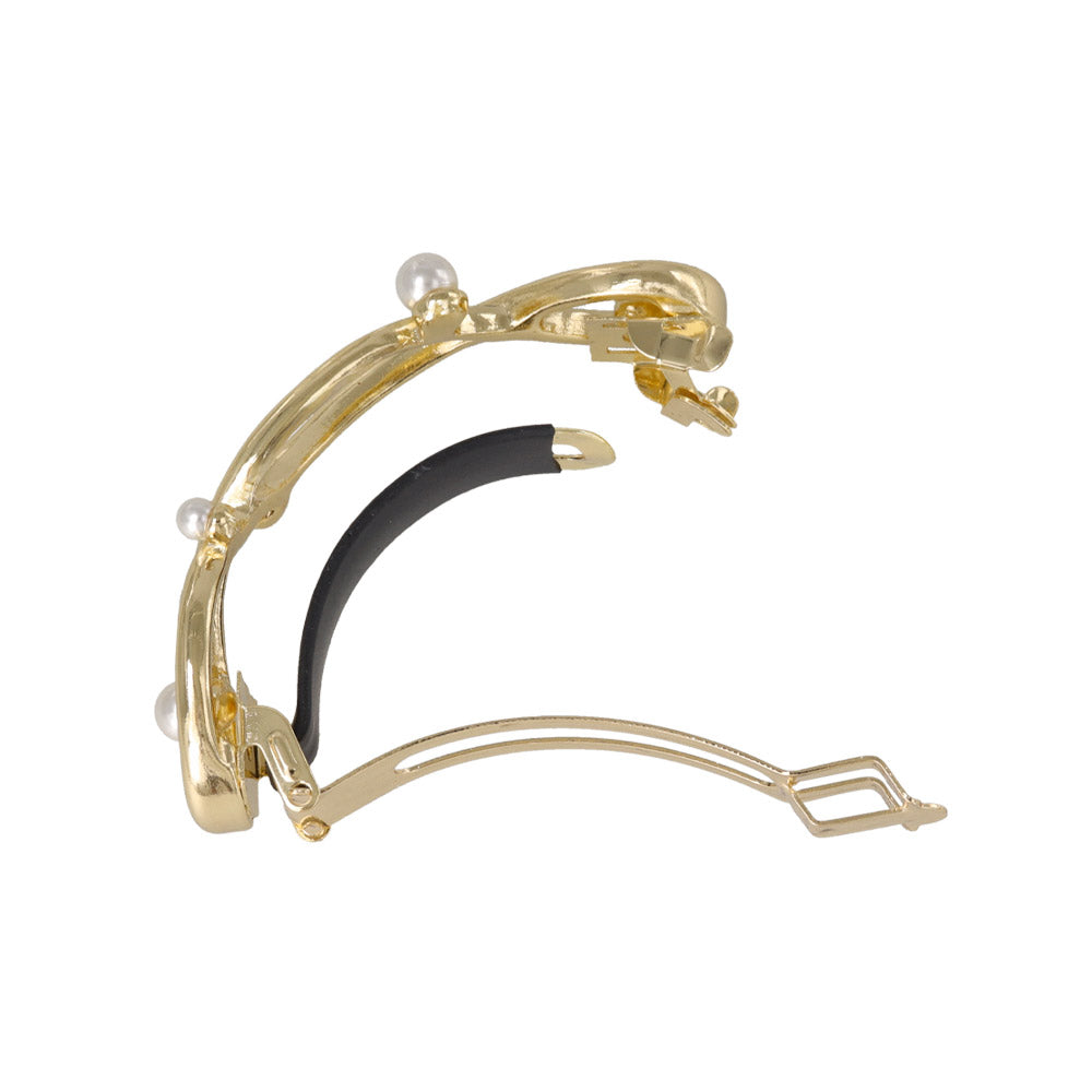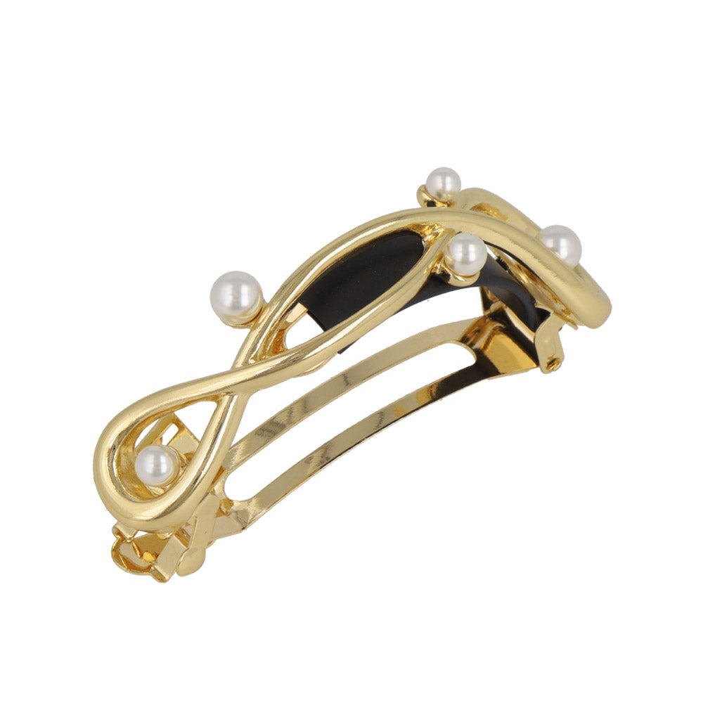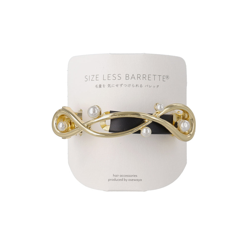 バレッタ ニッケルフリー メタル ループ クロス ライン ランダム パール すべり止め付き サイズレスバレッタ