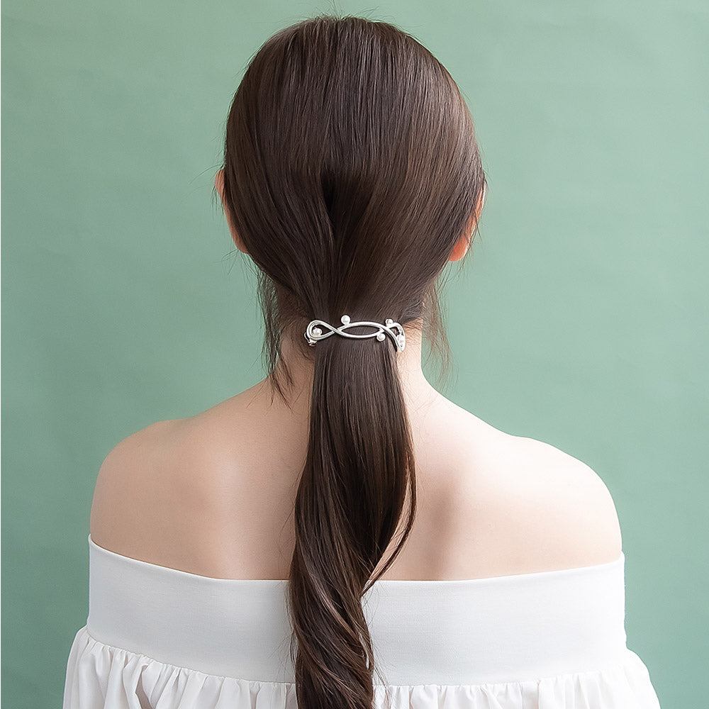 テクニックいらずでおしゃれ上級者な雰囲気に。大人コーデに使いやすい、ちょうど良いお洒落さの効いたアートなヘアアクセサリー。オールシーズン使えるメタルカラーで使い勝手◎