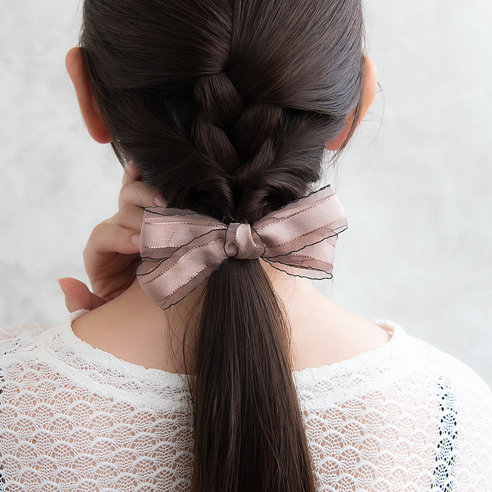 バレッタ リボン シアー パイピング カラー スリムバレッタ