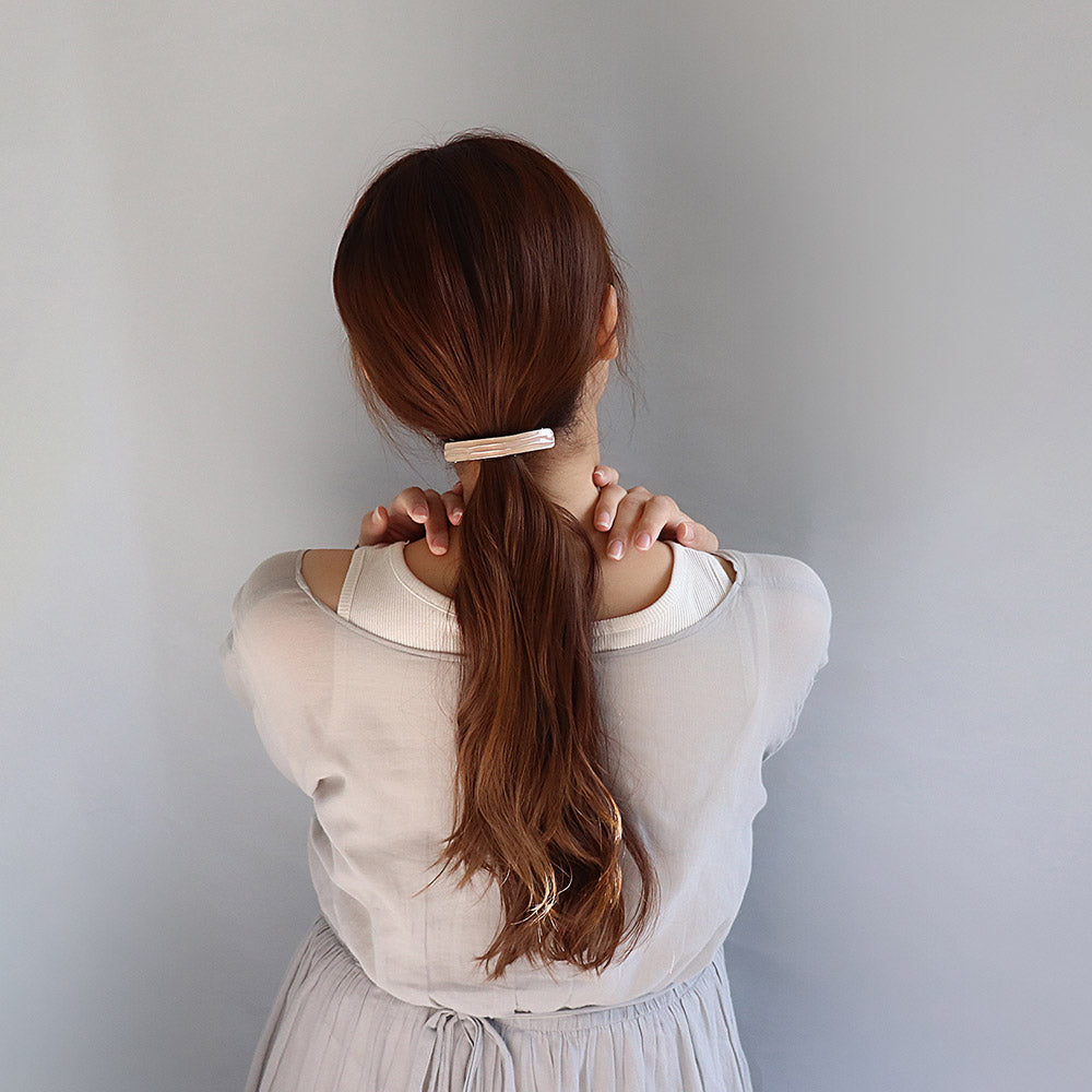 片側が開いているしなやかなパーツを使うことにより、毛量を気にせずつけることができます。