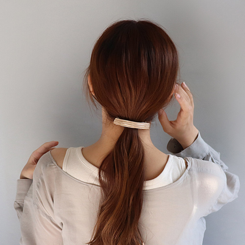 バレッタ ニッケルフリー メタル ウェーブ ライン カラー レクタングル すべり止め付き サイズレスバレッタ