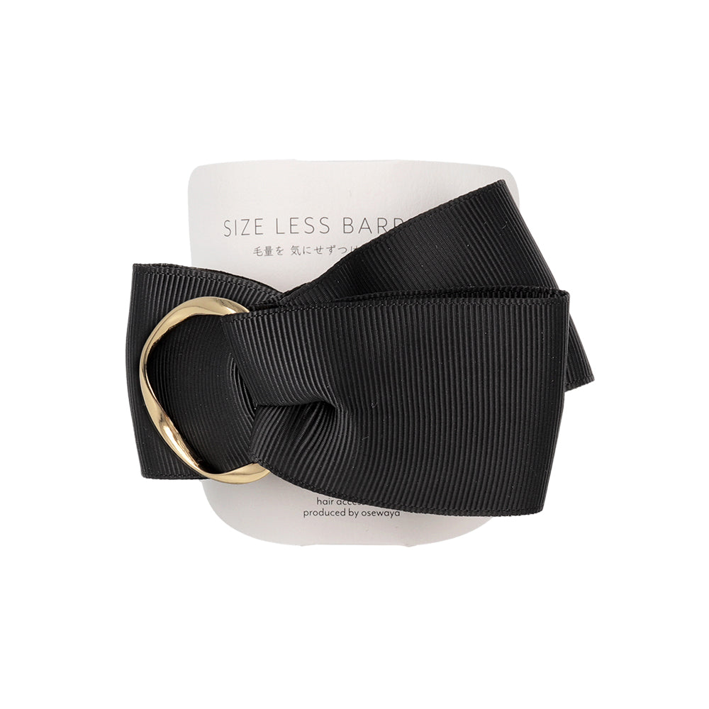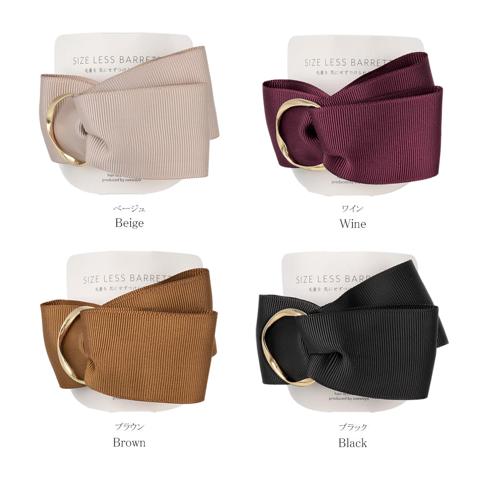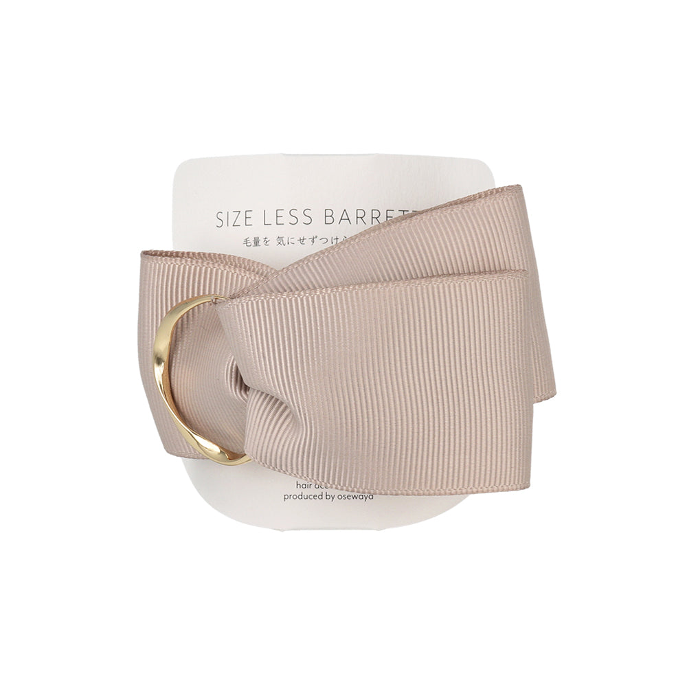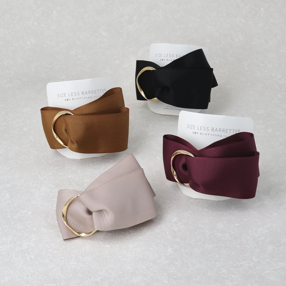 バレッタ ニッケルフリー メタル リング グログラン リボン アシンメトリー カラー すべり止め付き サイズレスバレッタ