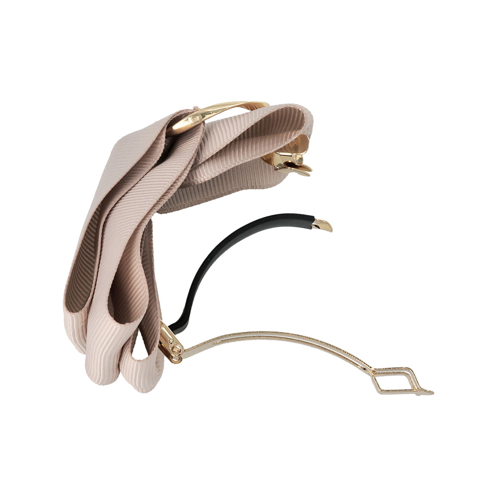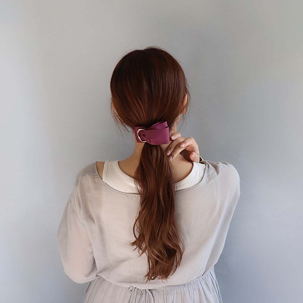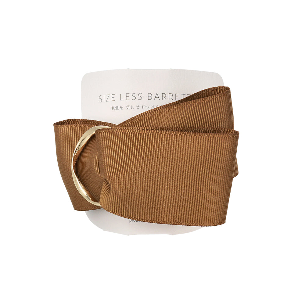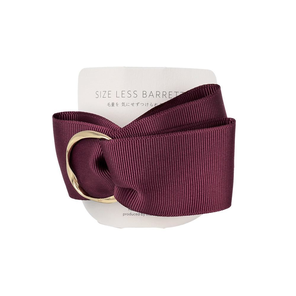 バレッタ ニッケルフリー メタル リング グログラン リボン アシンメトリー カラー すべり止め付き サイズレスバレッタ