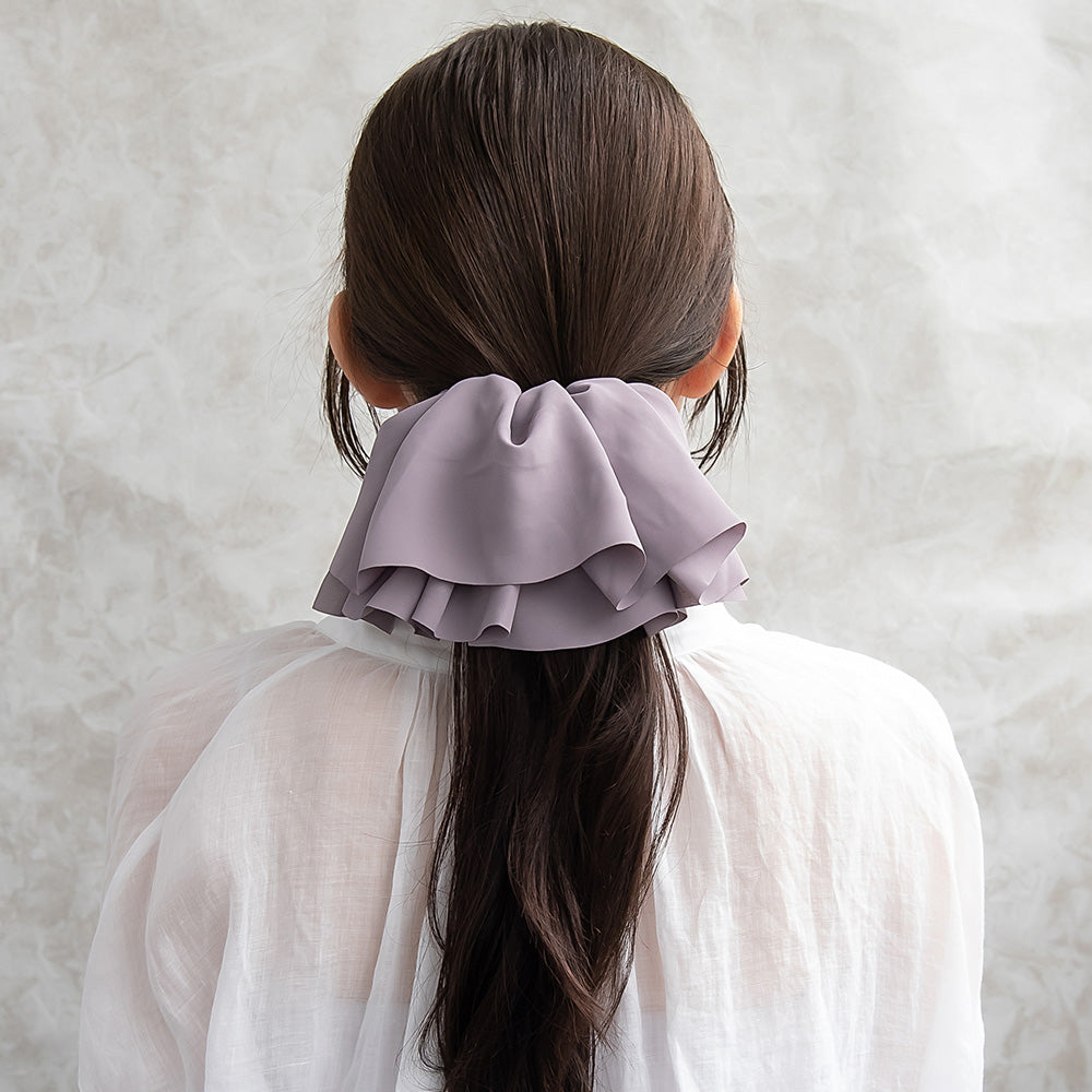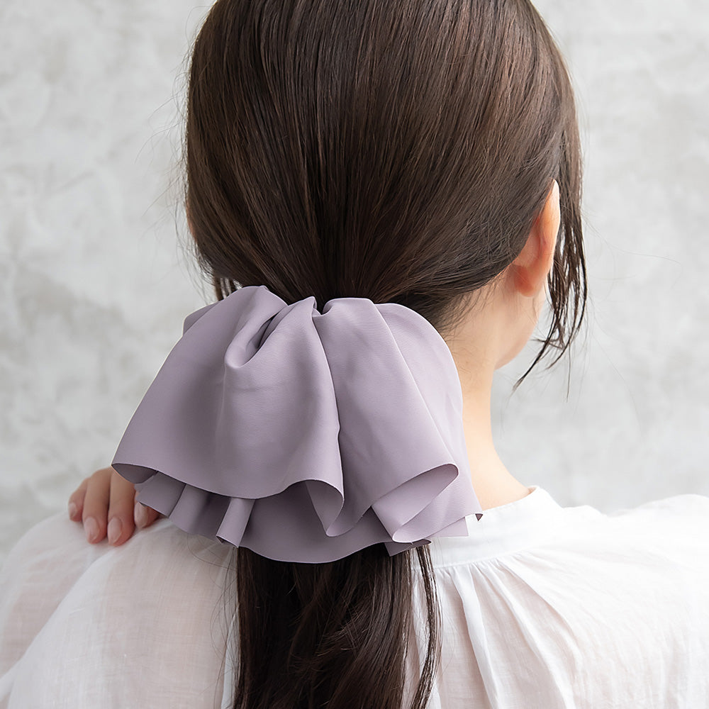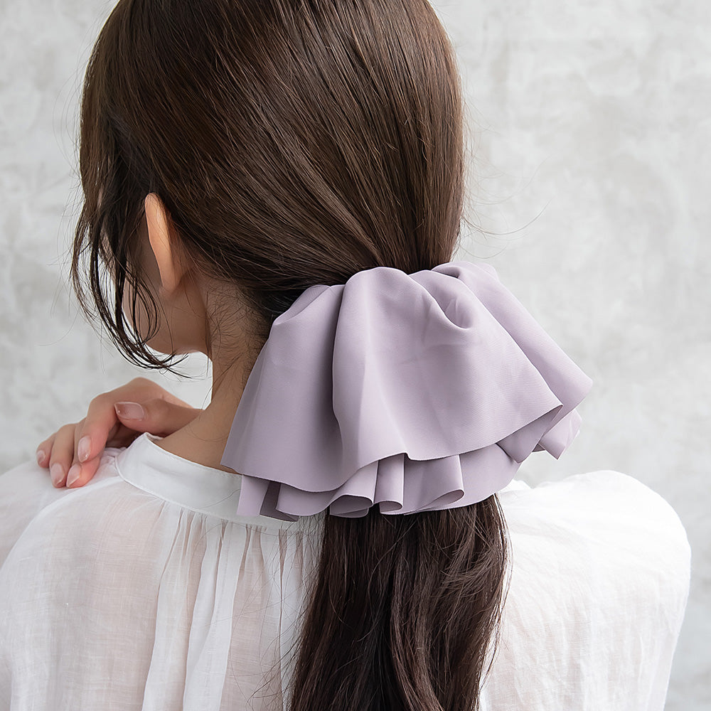 vt0397”華をそえる”に丁度良い今っぽいボリューミーなシルエット。いつものコーデにときめきをプラスしてくれる主役級のヘアアクセサリー。ふわっとゆれるフリルが甘くガーリー、うしろ姿もぬかりなくどこからみても可愛いヘアスタイルに。ベーシックカラーで使い勝手◎