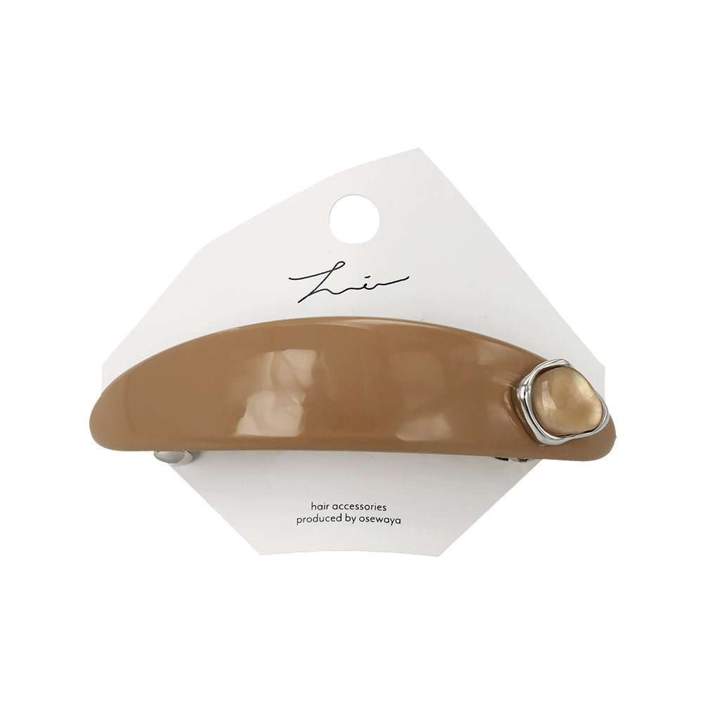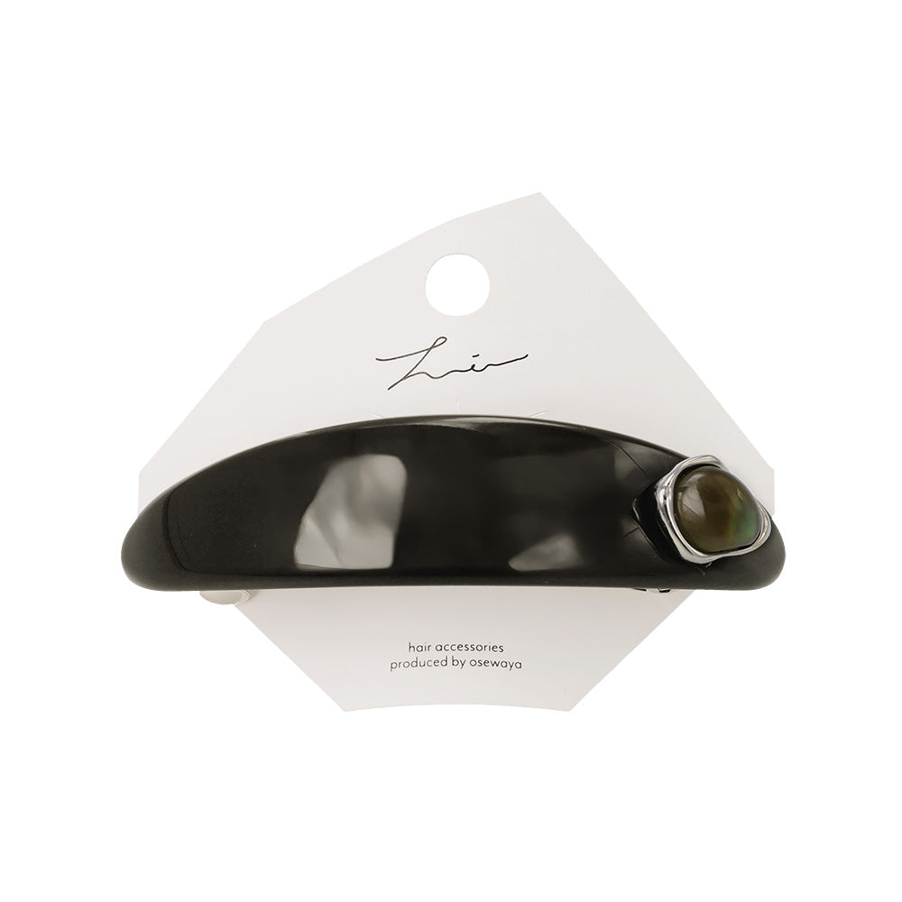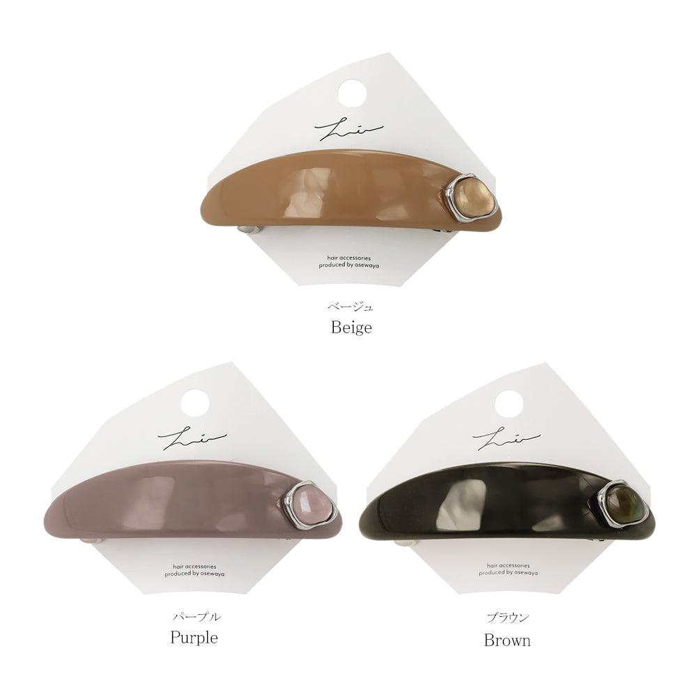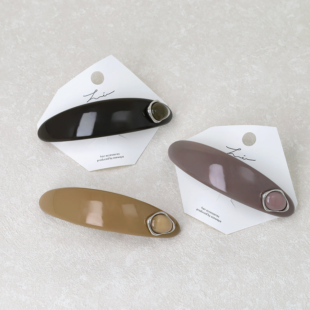 バレッタ オーバル カーブ プレート メタル フレーム ストーン
