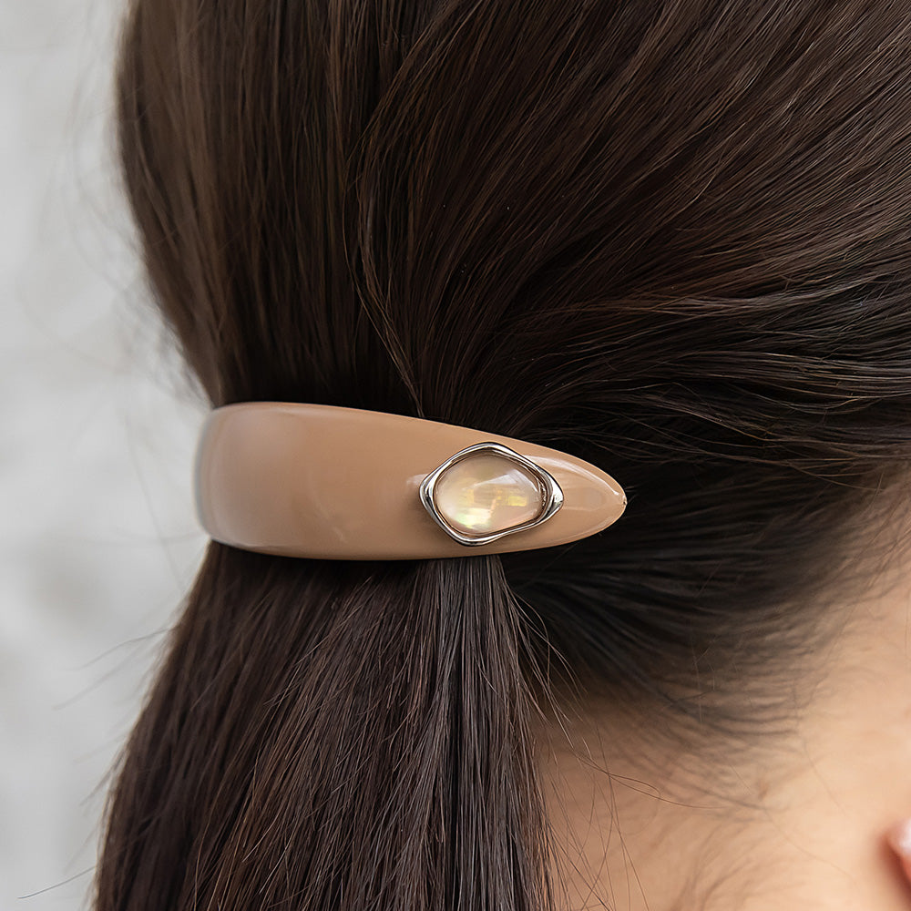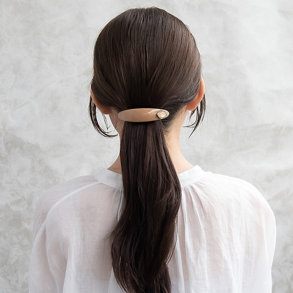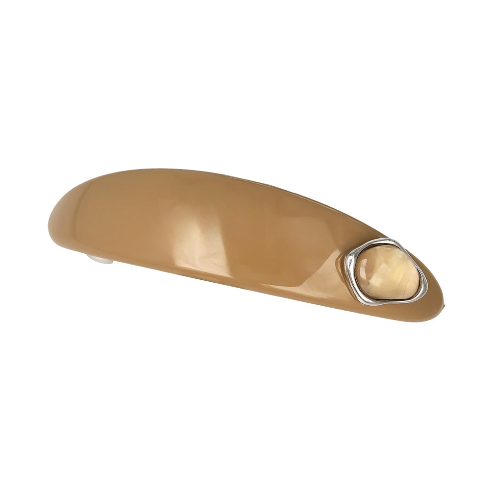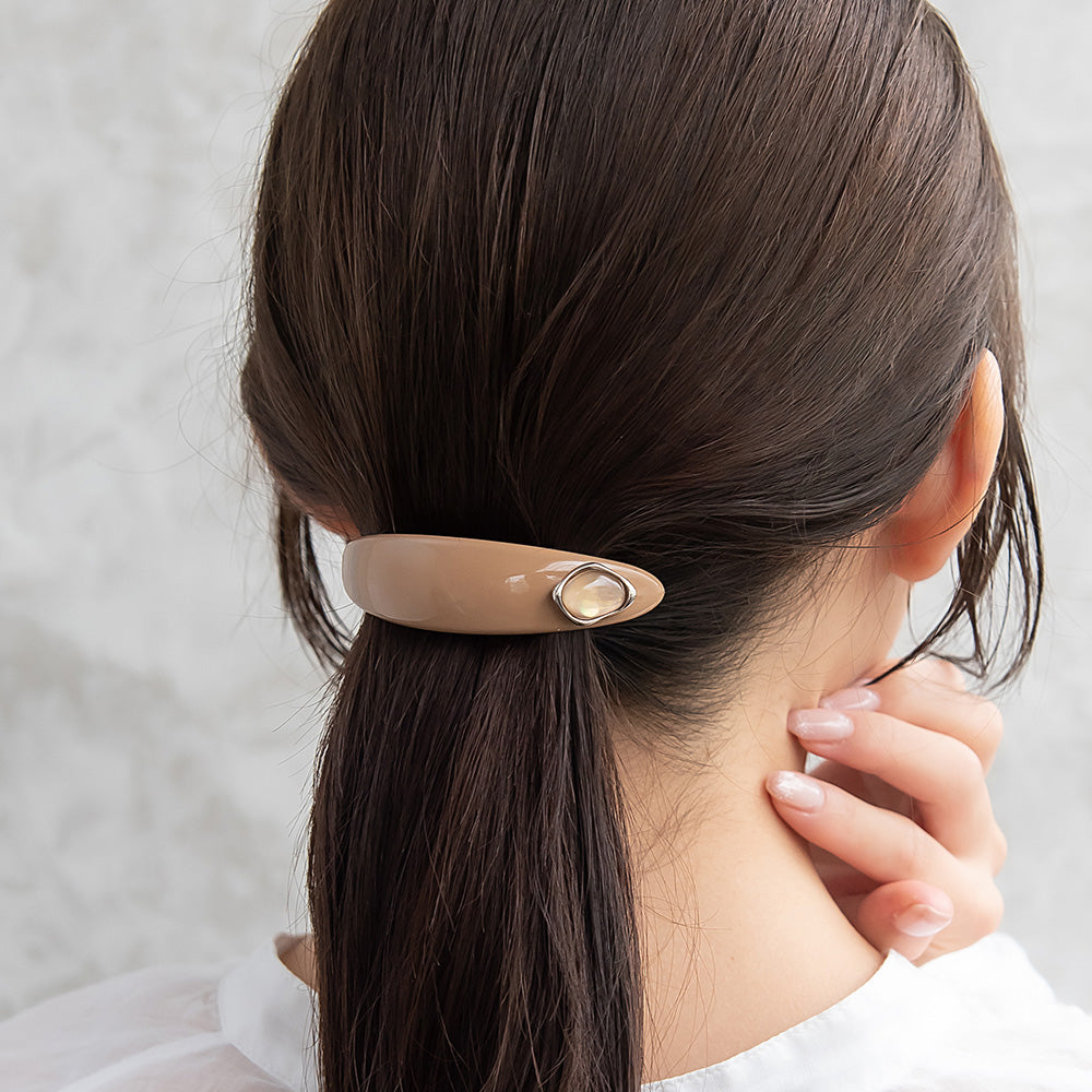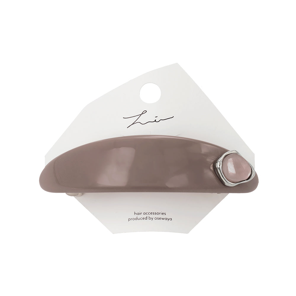バレッタ オーバル カーブ プレート メタル フレーム ストーン
