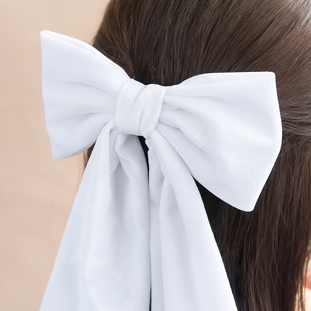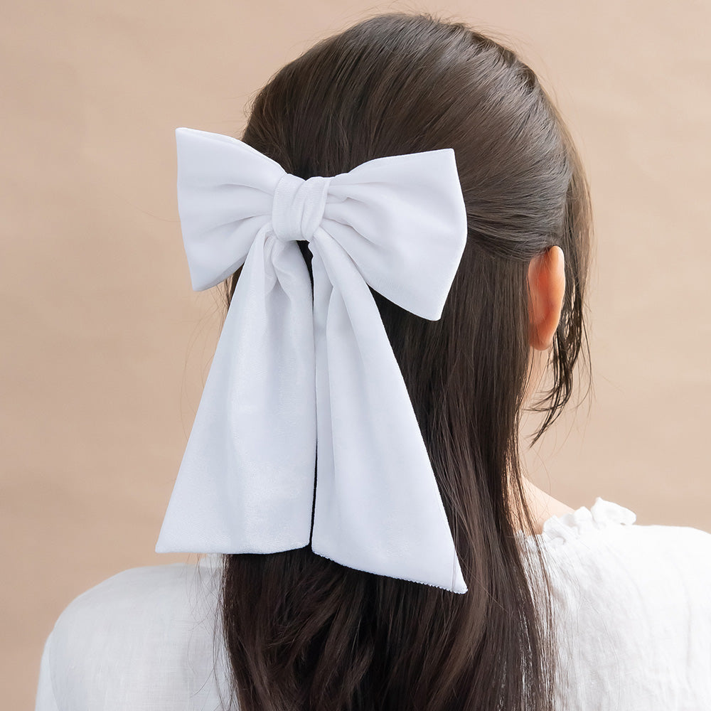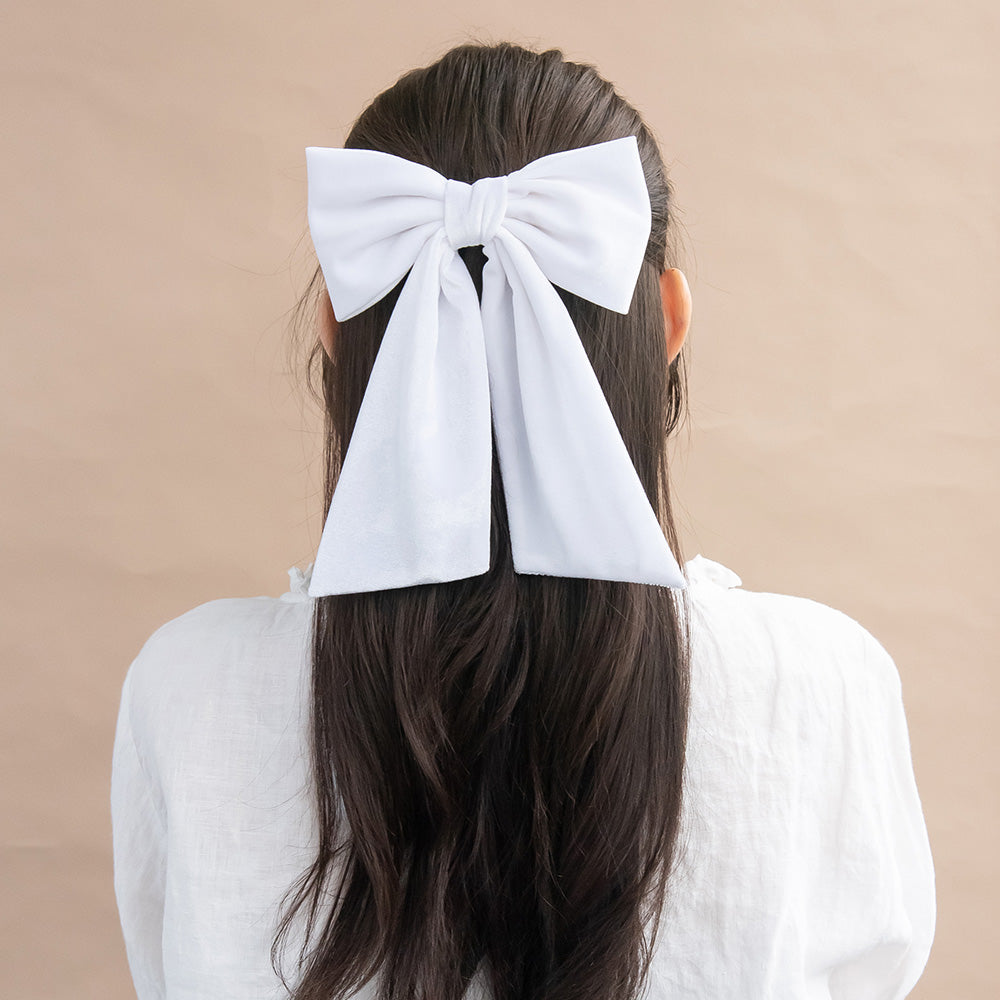vt0410人気のシンプルなベロアリボンにホワイトが登場しました。カジュアルにも甘めにも合うトレンドの長め丈。