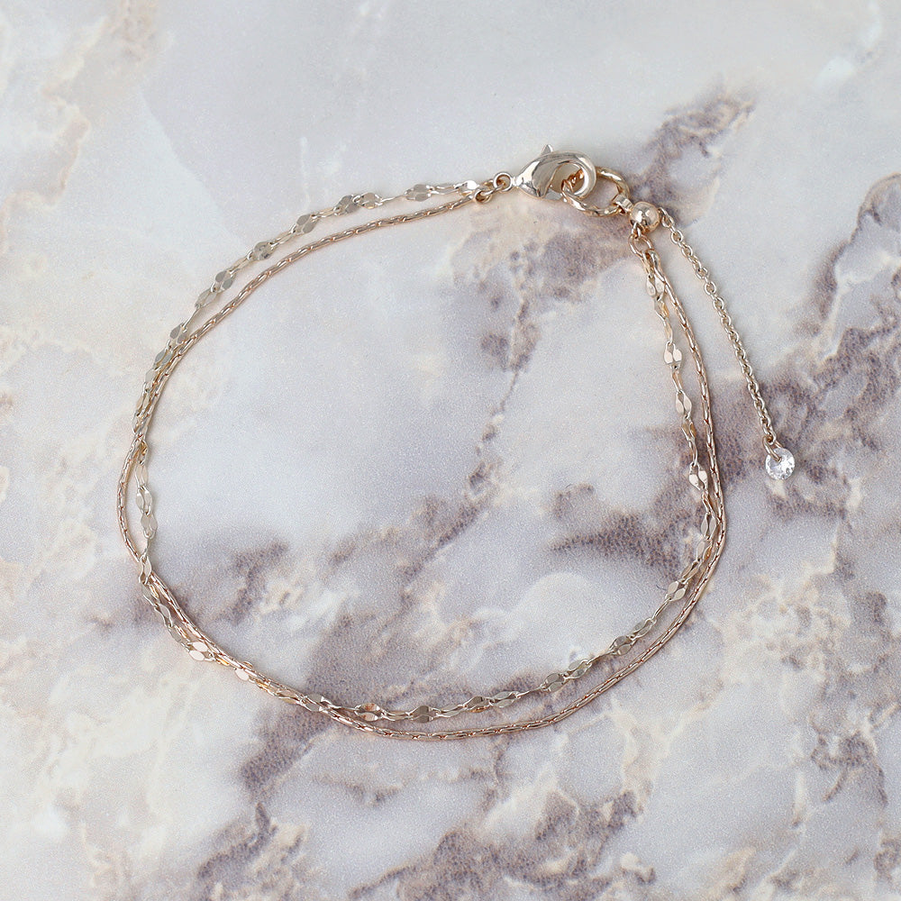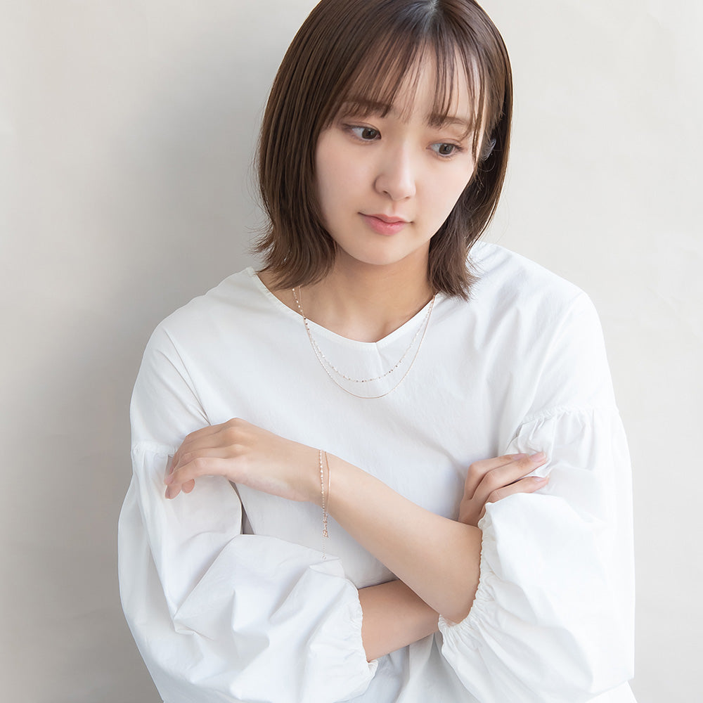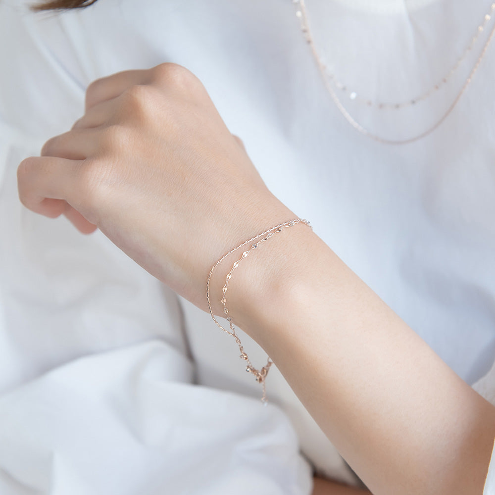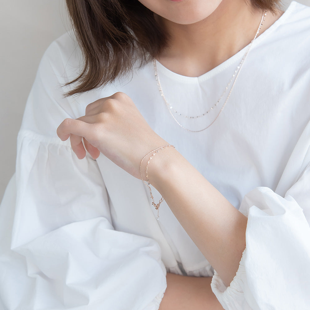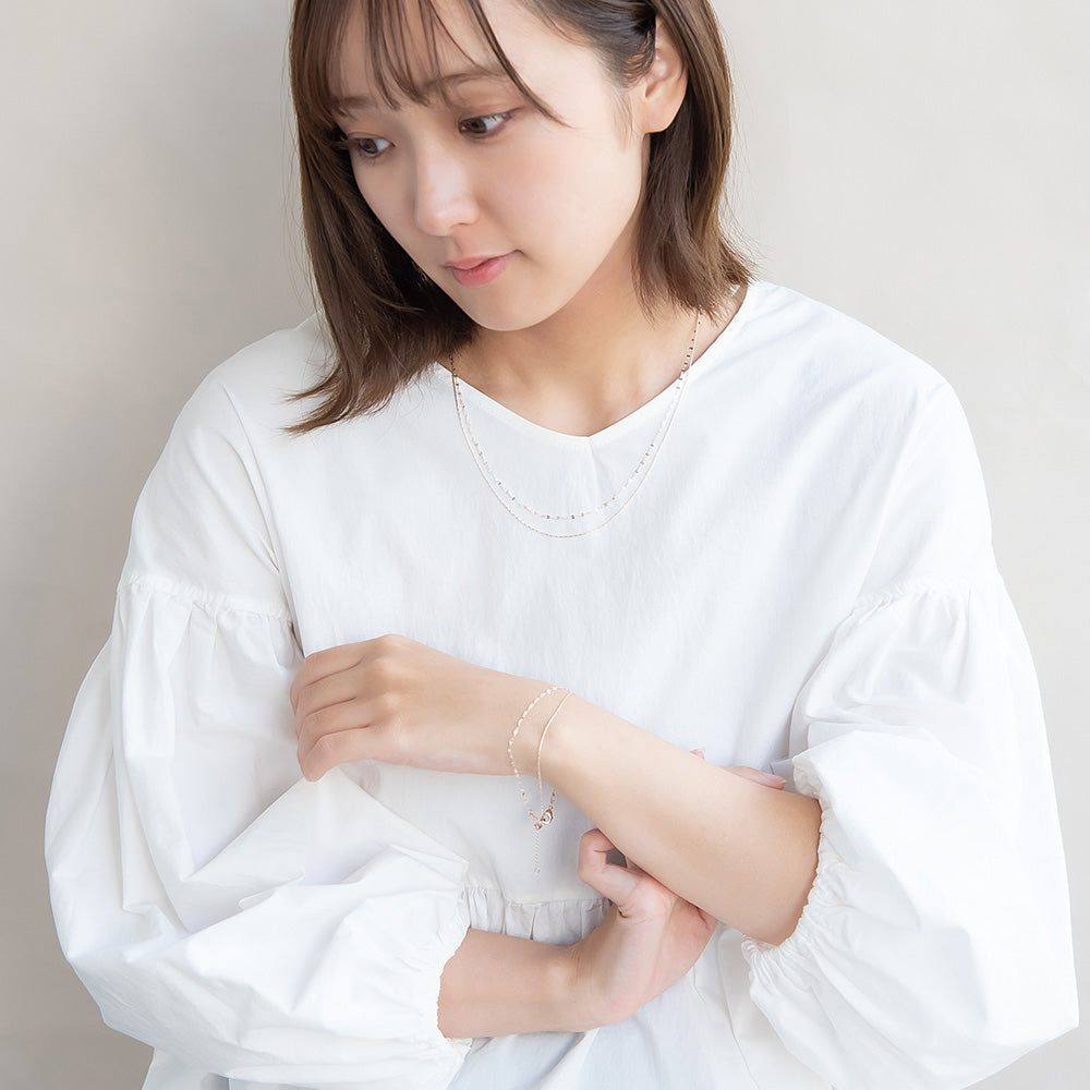ブレスレット ニッケルフリー ロゼシルバー キュービックジルコニア スエッジ ペタルチェーン 2連 スライドボール チェーンブレスレット
