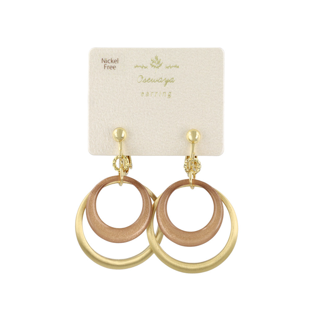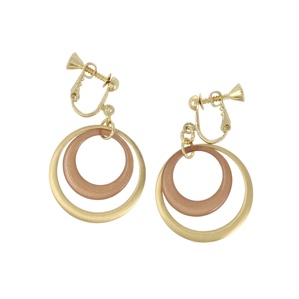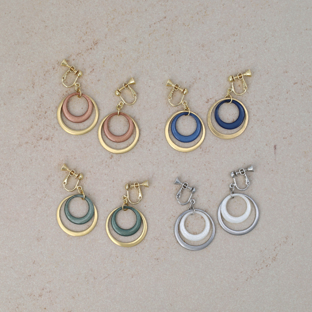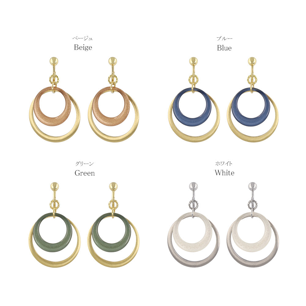 イヤリング ニッケルフリー メタル 2連 カラー サークル ネジバネ式イヤリング
