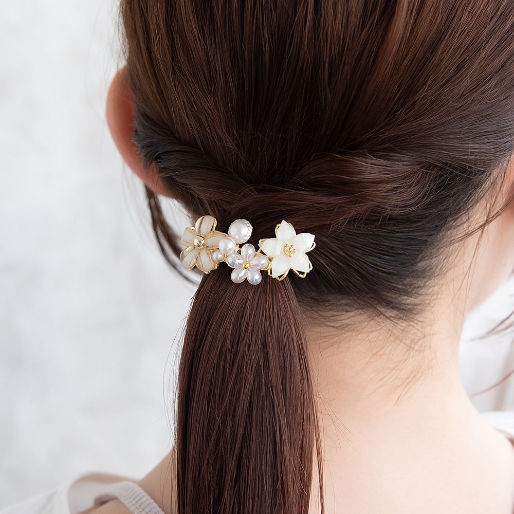 ヘアカフ トリプル フラワー オーロラ カラー パール