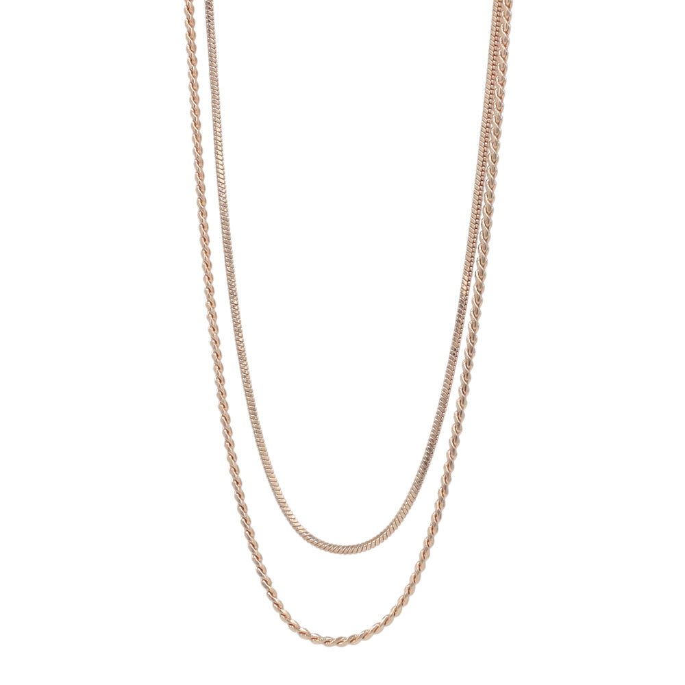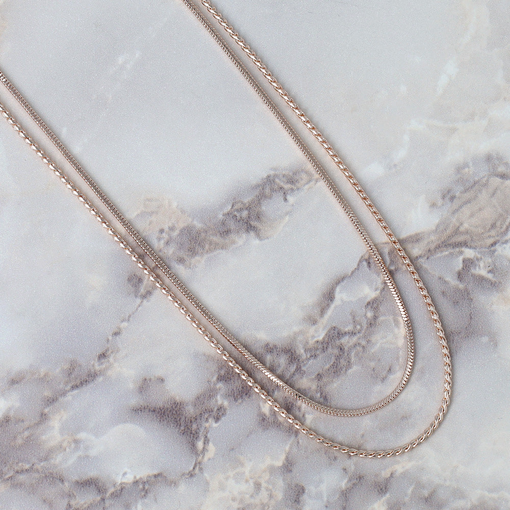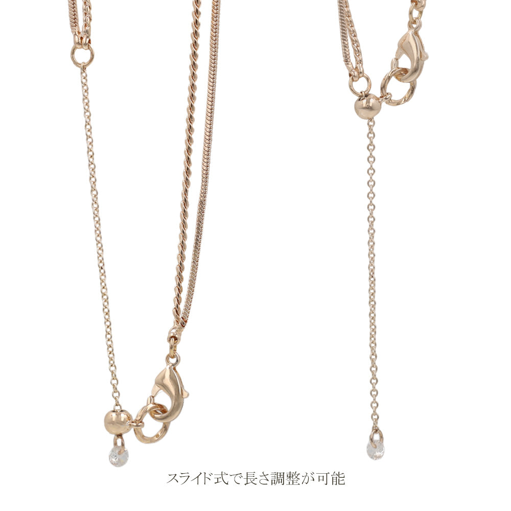 ネックレス ニッケルフリー ロゼシルバー キュービックジルコニア スネークチェーン 2連 スライドボール ショートネックレス