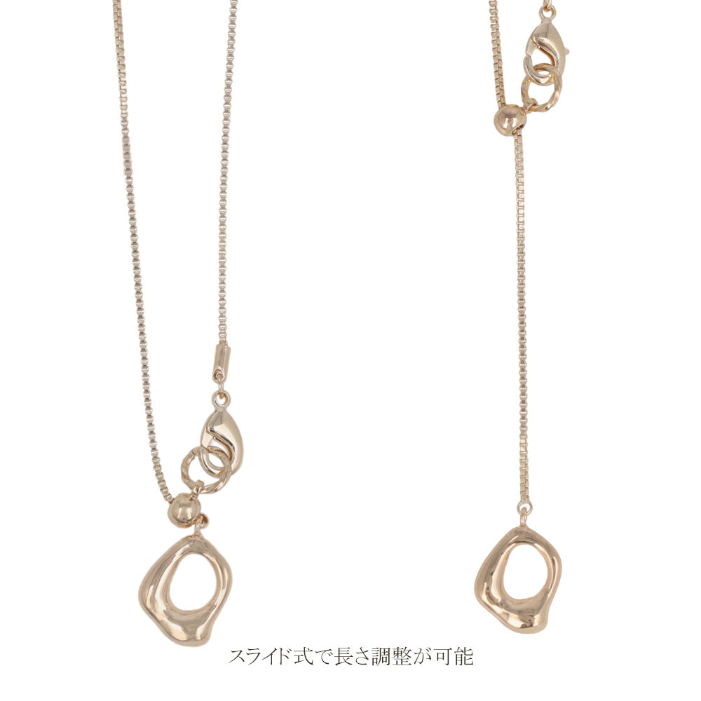 ネックレス ニッケルフリー ロゼシルバー メルト オーバル リング Y字 スライドボール ロングネックレス
