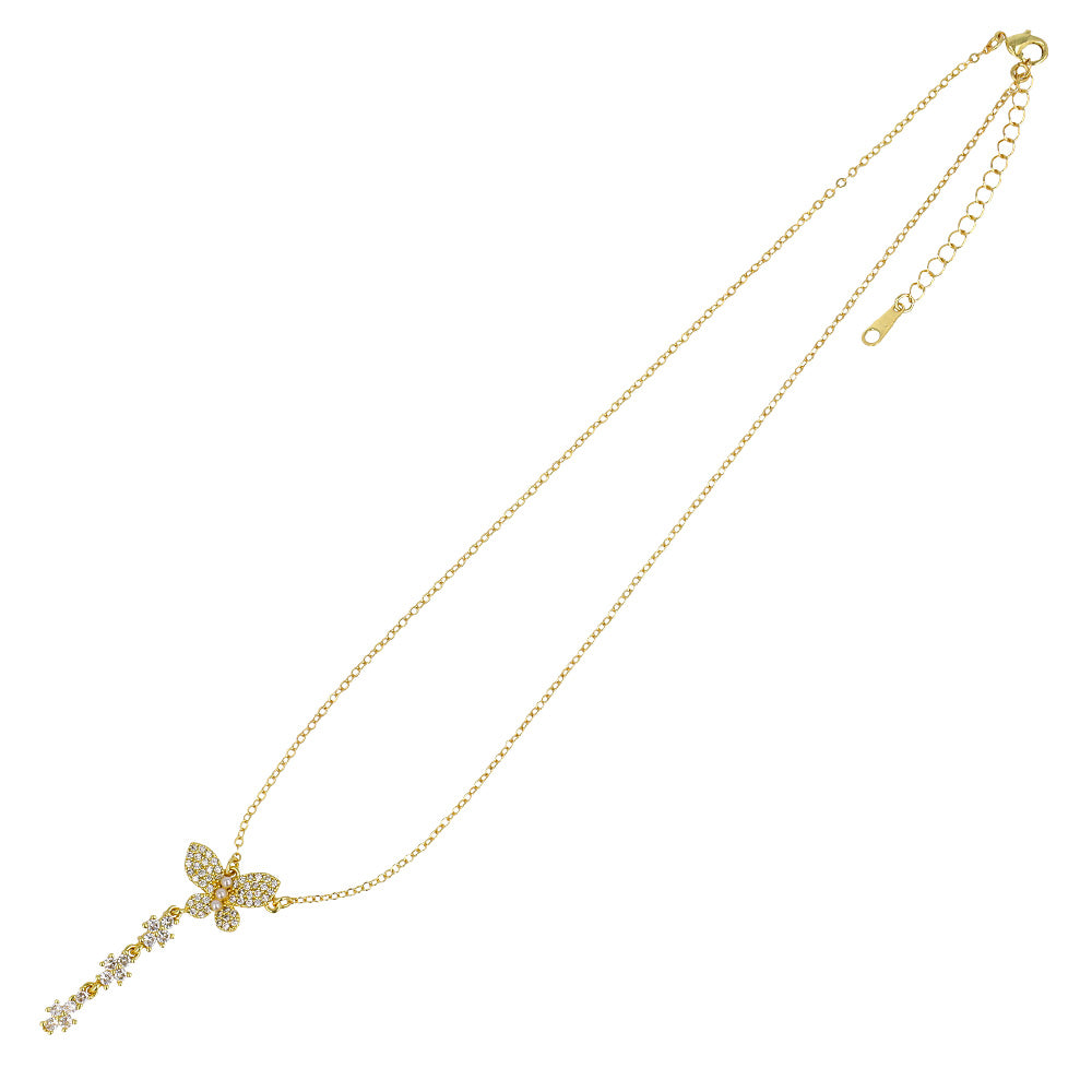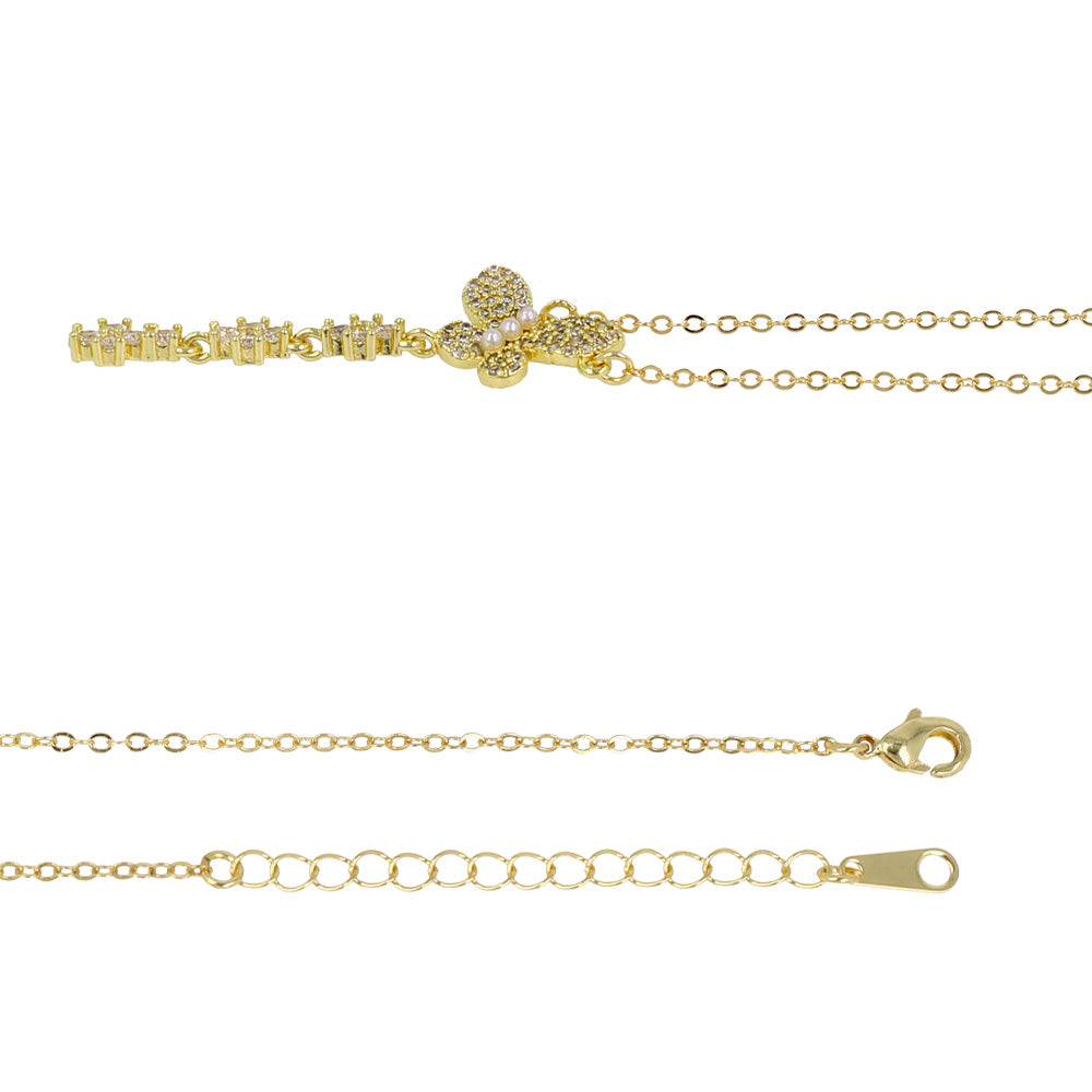ネックレス ニッケルフリー キュービックジルコニア 蝶 ストーン パール チェーン ショートネックレス