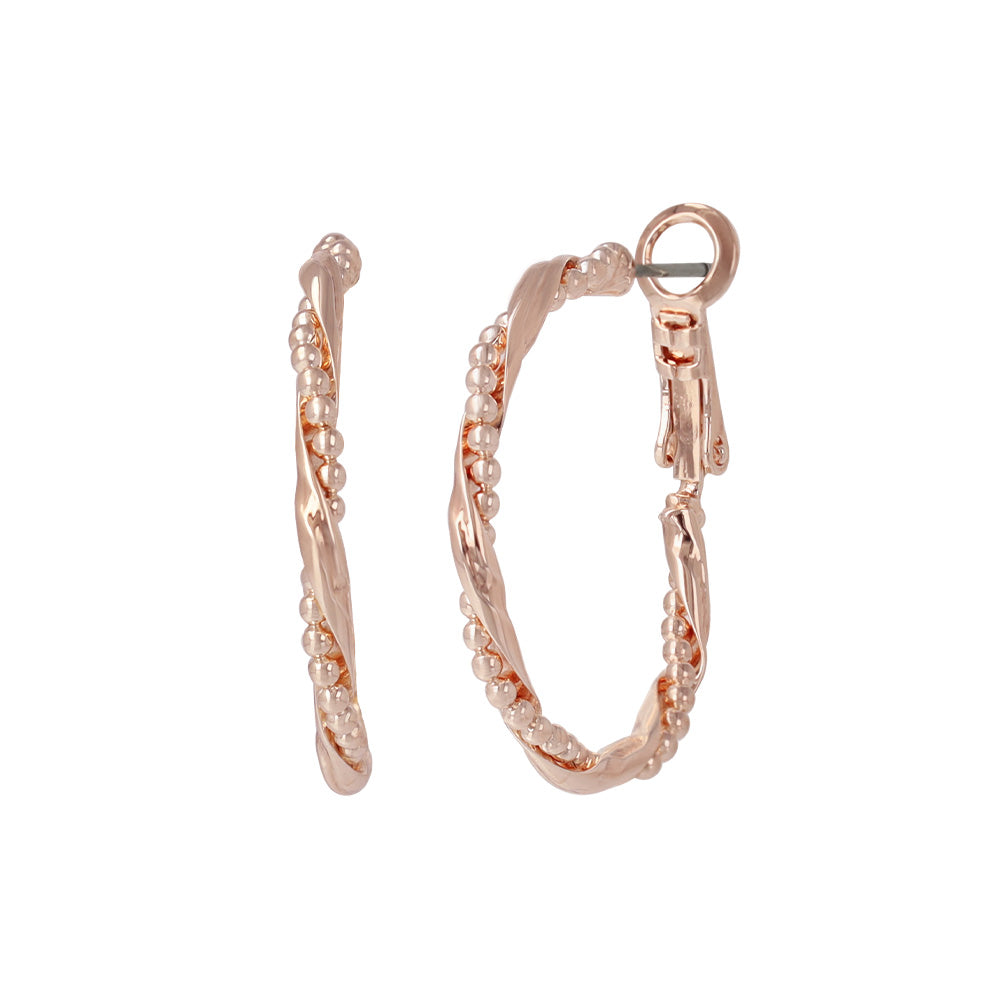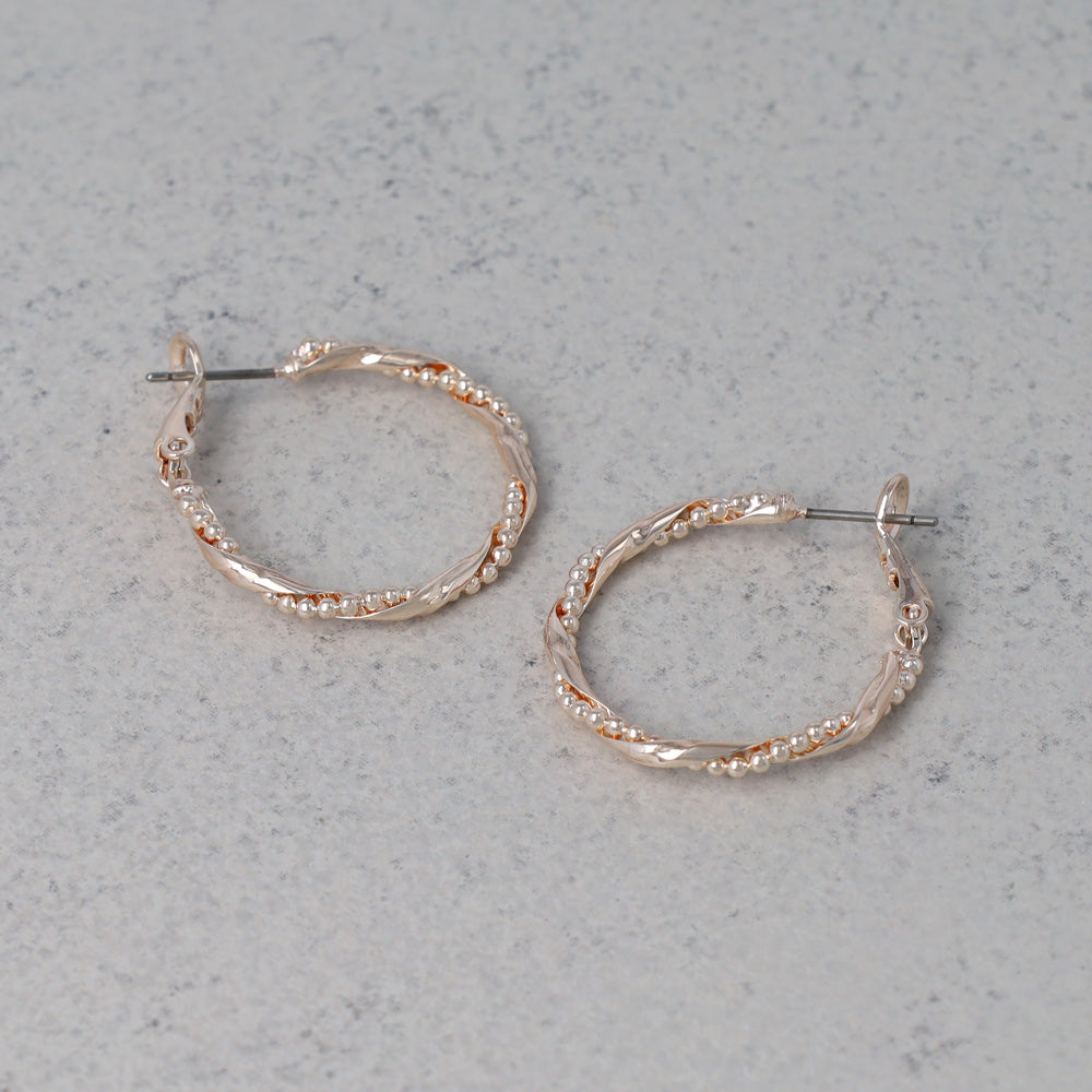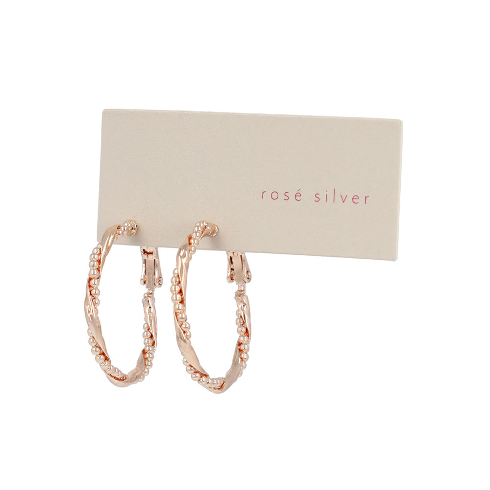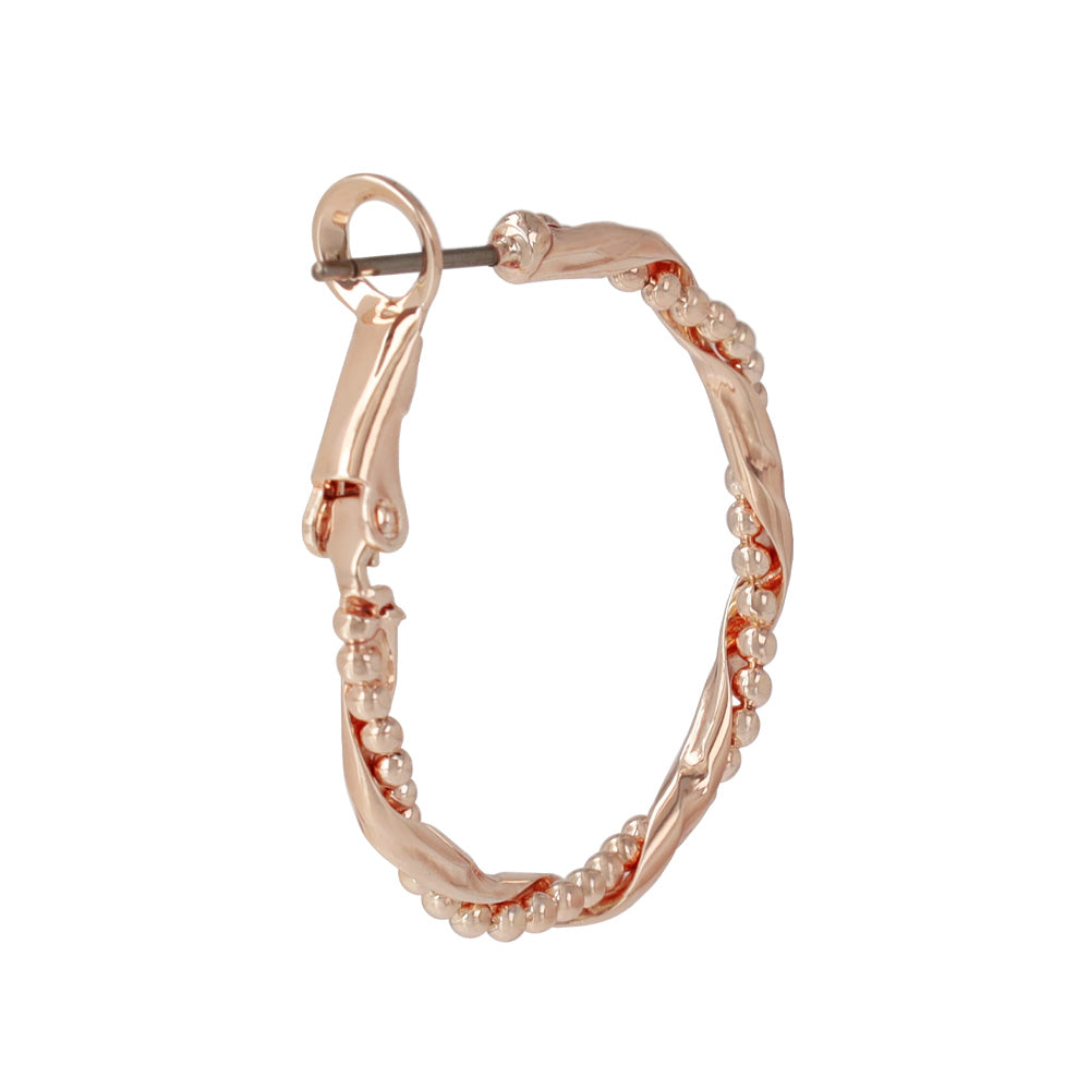 ピアス ニッケルフリー ロゼシルバー ボールチェーン プレート ツイスト チタンポスト フープピアス