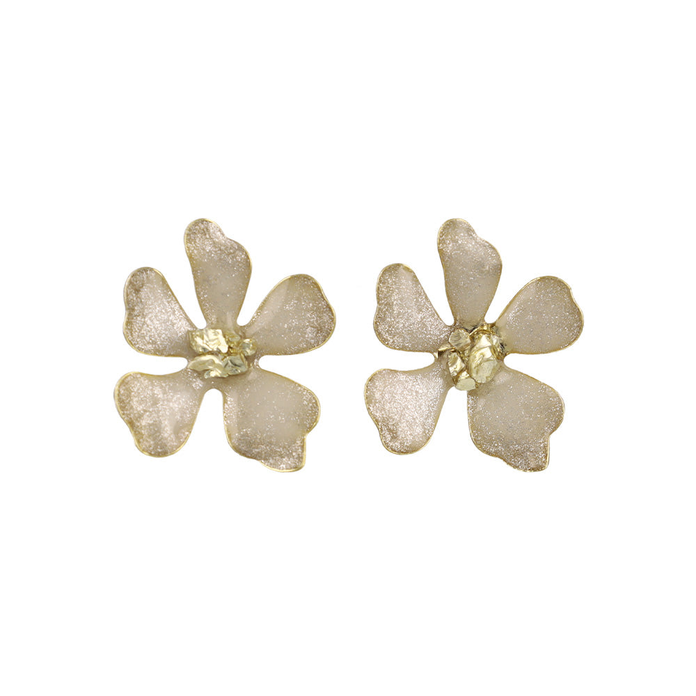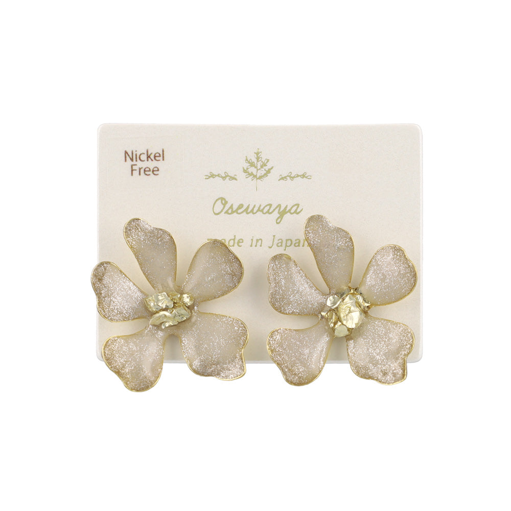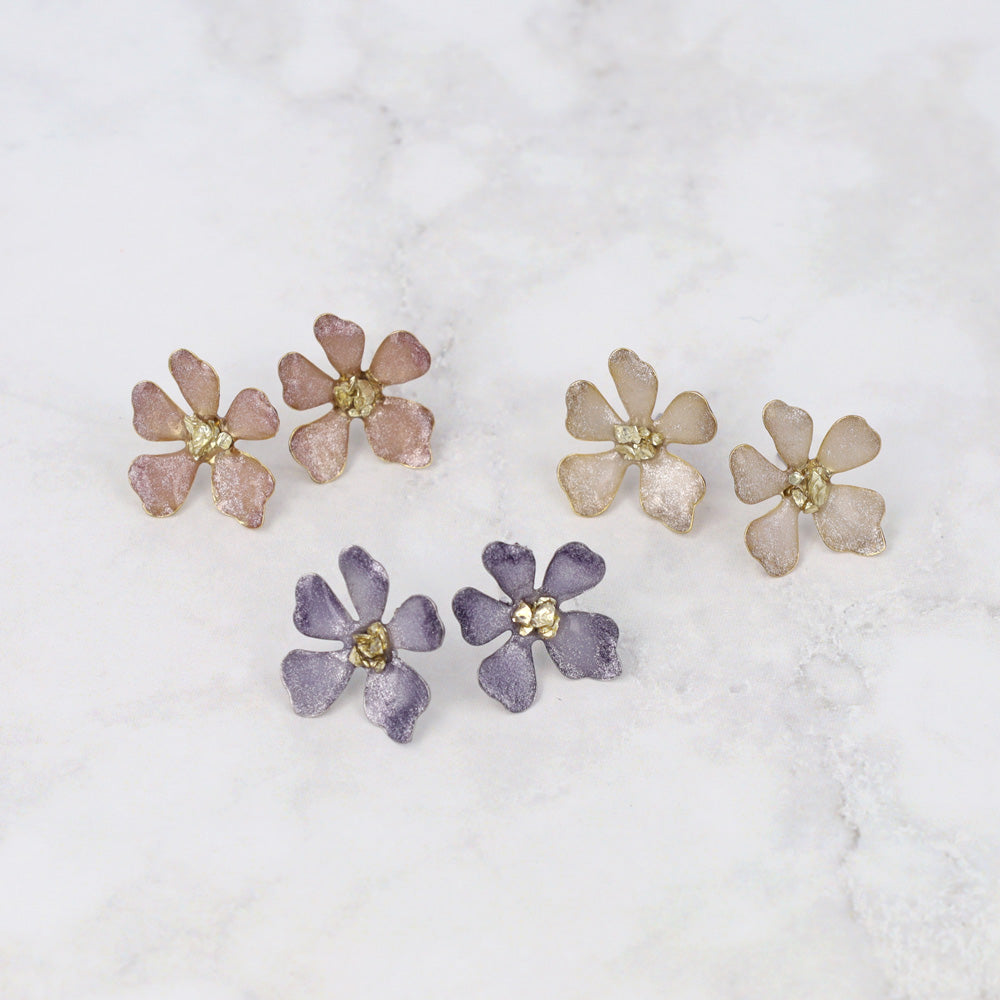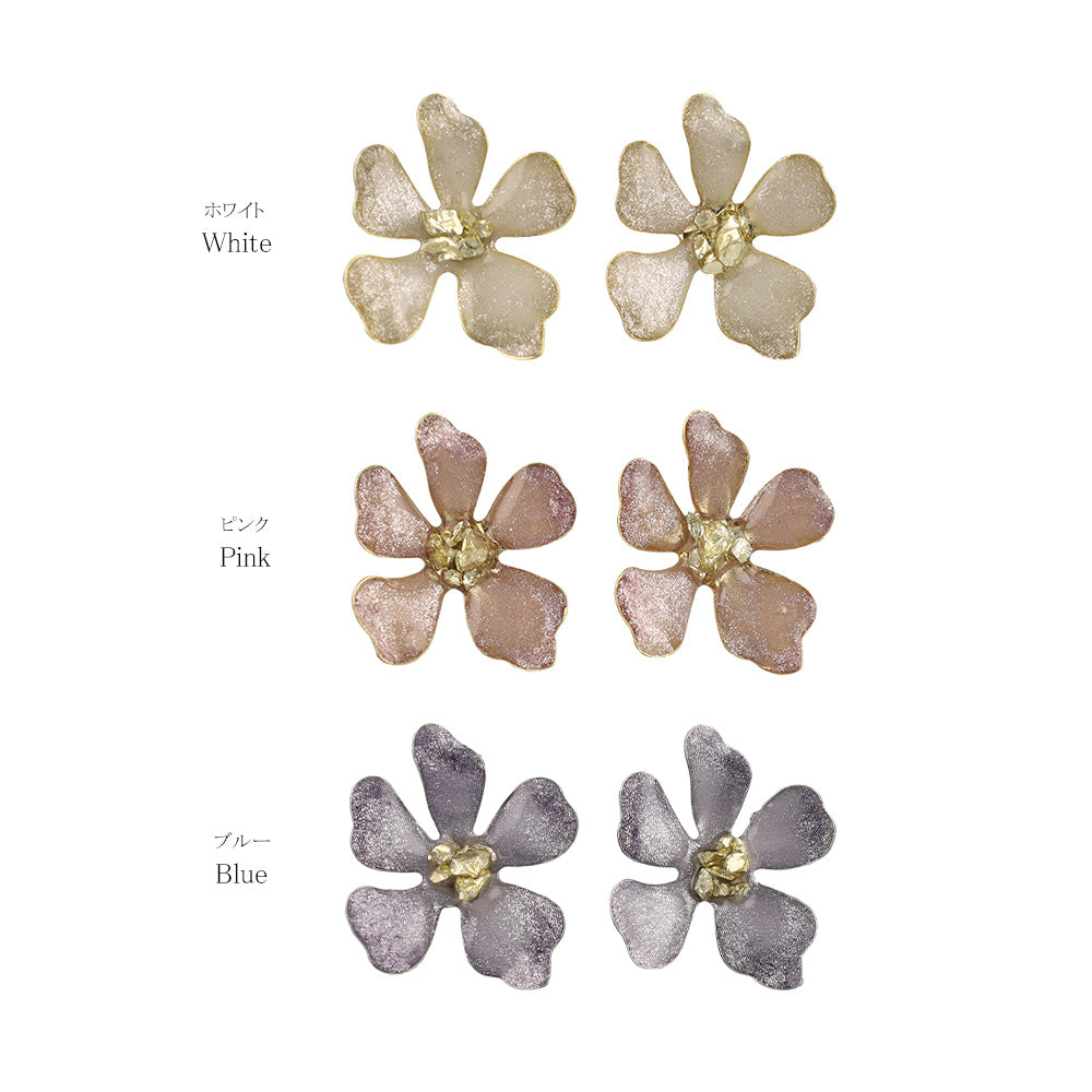 ピアス ニッケルフリー フラワー メタル ラメ くすみカラー ステンレスポスト スタッドピアス