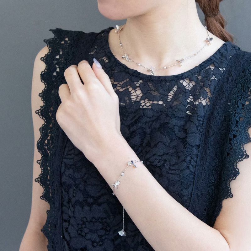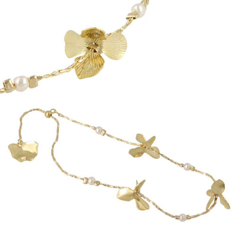 Classy GARDEN ブレスレット ニッケルフリー フラワー メタル パール スライドボール チェーンブレスレット