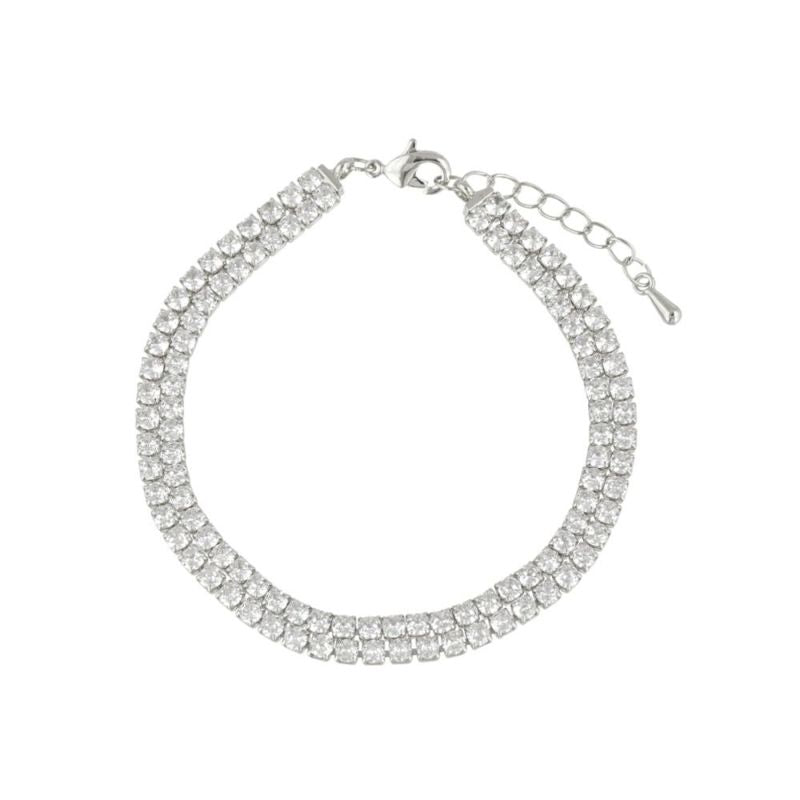 ブレスレット ニッケルフリー キュービックジルコニア 2連 連爪 チェーンブレスレット