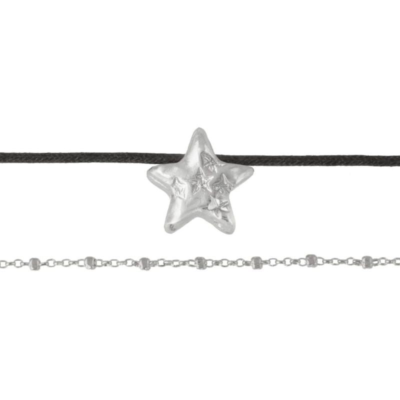 ブレスレット nuit ニッケルフリー スター 星柄 メタル ストーン 2連 コード チェーンブレスレット