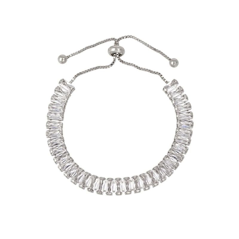 bl0533きらりと美しく輝く、キュービックジルコニアのブレスレット。飽きの来ないシンプルなデザイン。コーデのポイントになるキレイめブレスレットは、着けやすくサイズ調整が簡単なスライドアジャスターを使用。