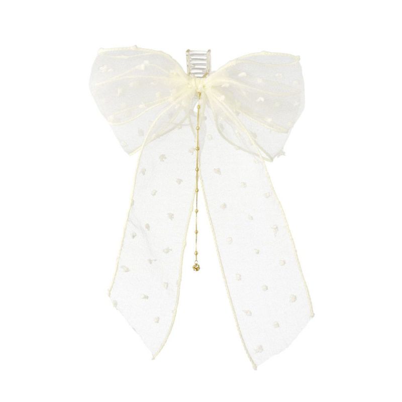 ヘアクリップ シアー ドット ロング リボン チェーン スイング ストーン ミニ バンスクリップ