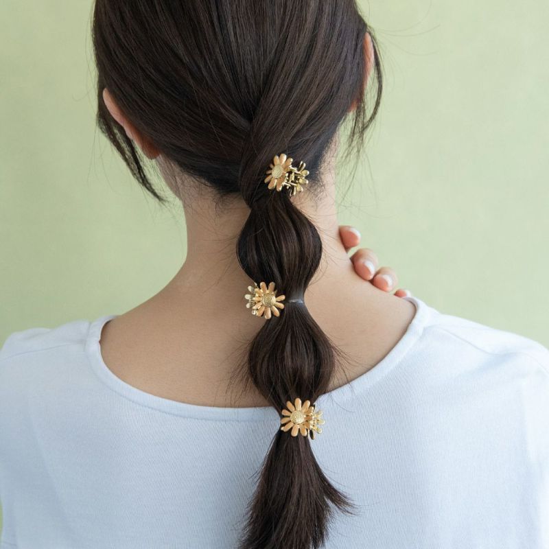 bs0545ちょこんとサイズのフラワーモチーフが可愛らしいセットクリップ。アレンジに幅の効く小さなヘアクリップをプラスしてトレンド感のあるヘアスタイルに。