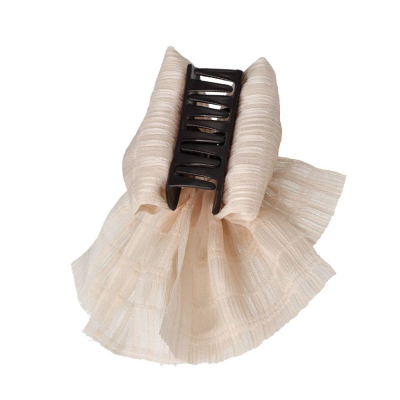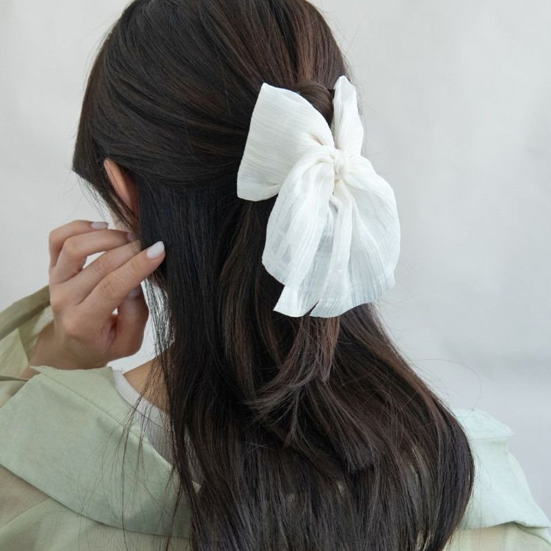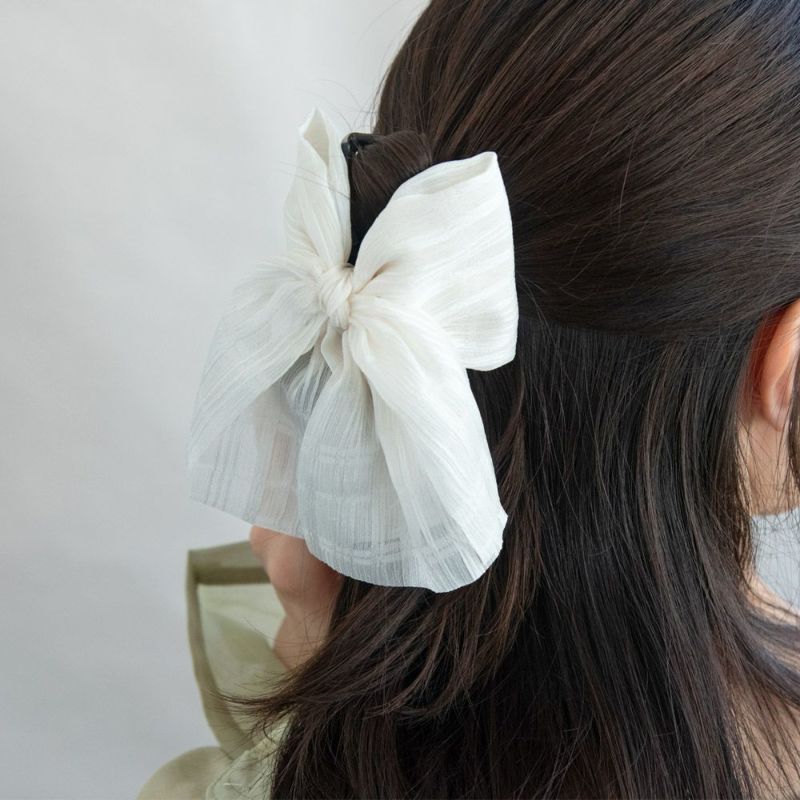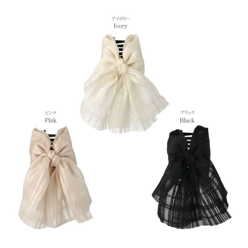 bs0548ふわり、ゆれるほんのりシアーなリボンのバンスクリップ。さりげないゆれ感がかわいさのポイント。