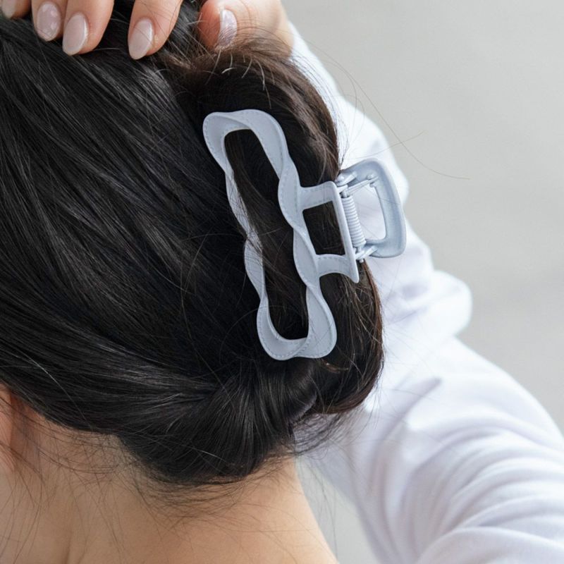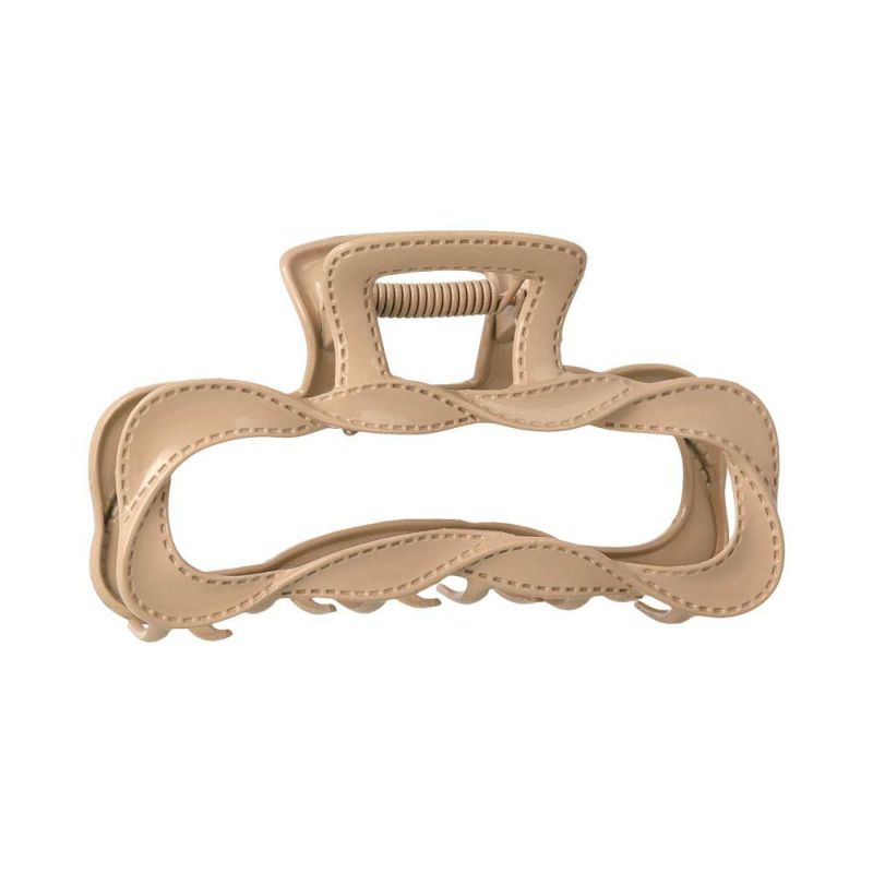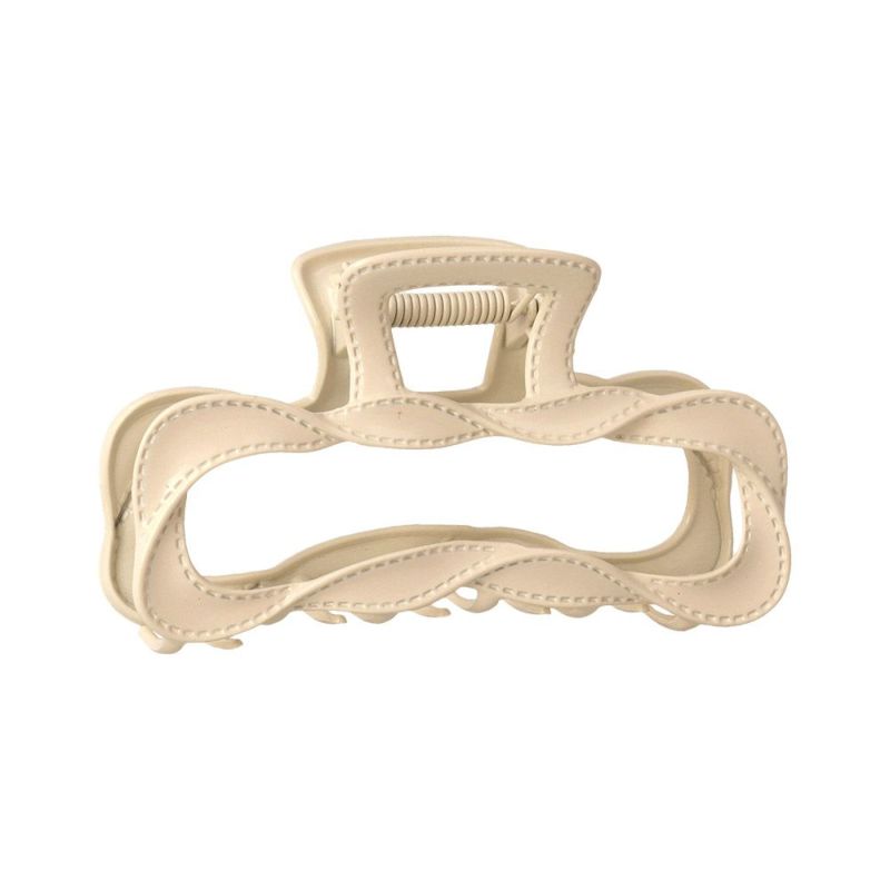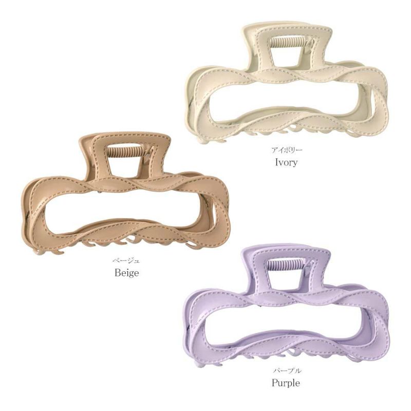 ヘアクリップ ステッチ リボン風 ツイスト カラー メタル レクタングル バンスクリップ