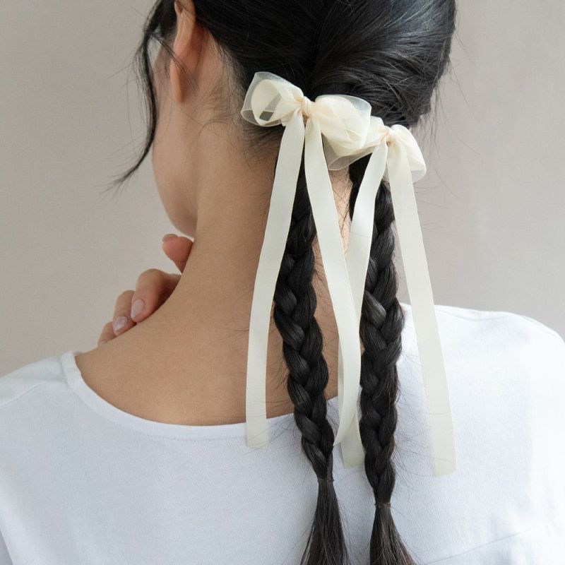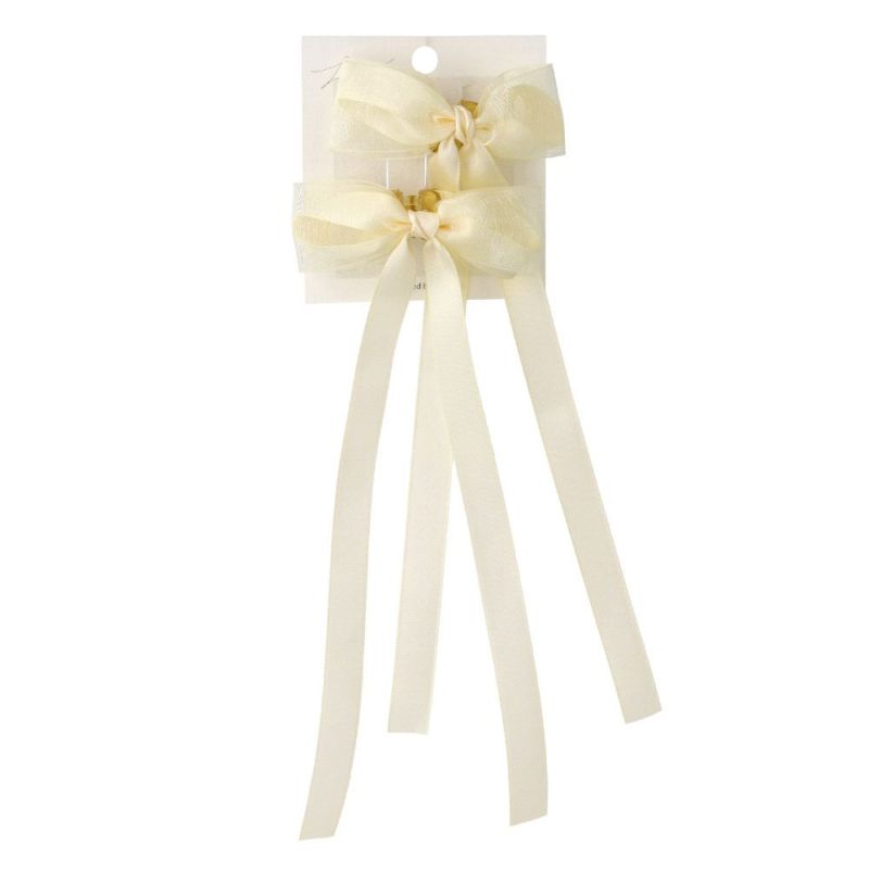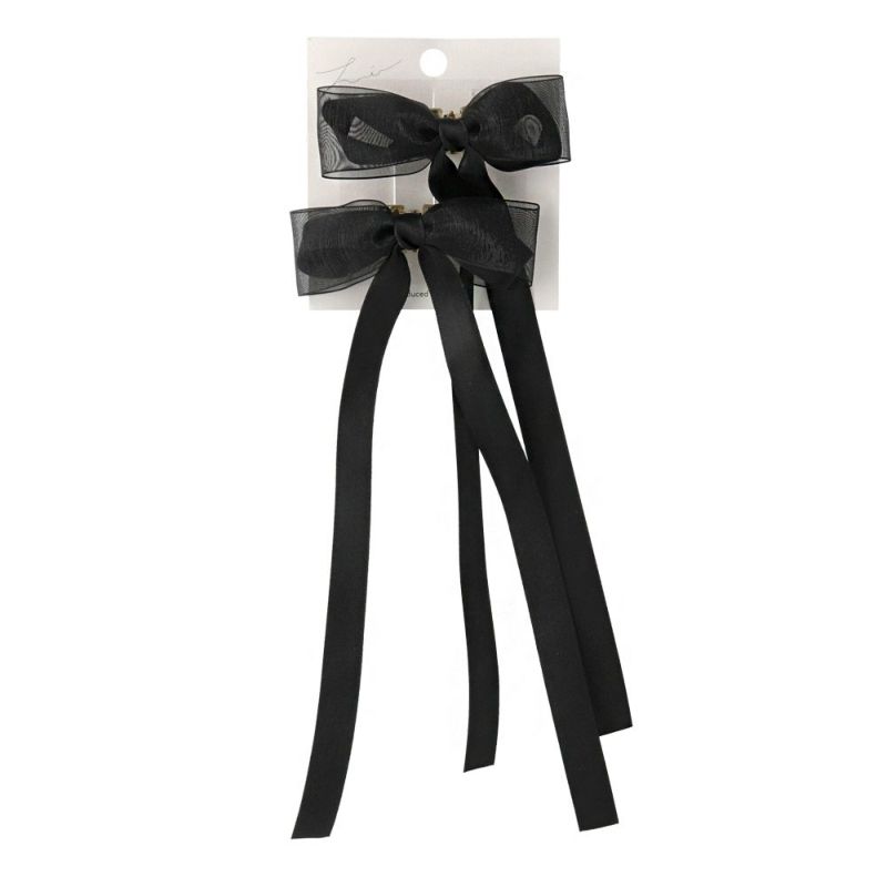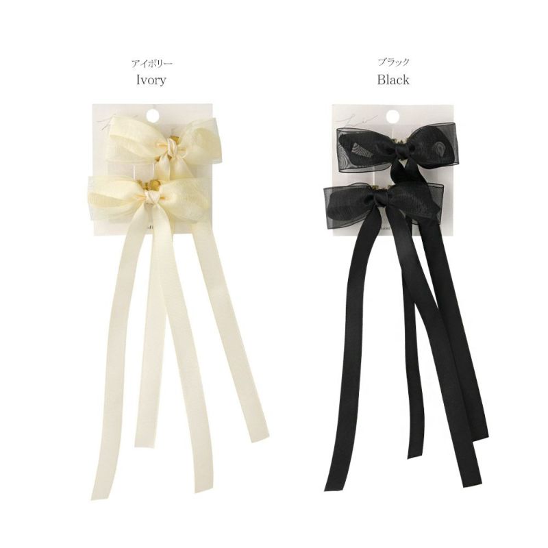 ヘアクリップ ロングリボン シアーレイヤード ベーシックカラー 2個セット ミニ バンスクリップ