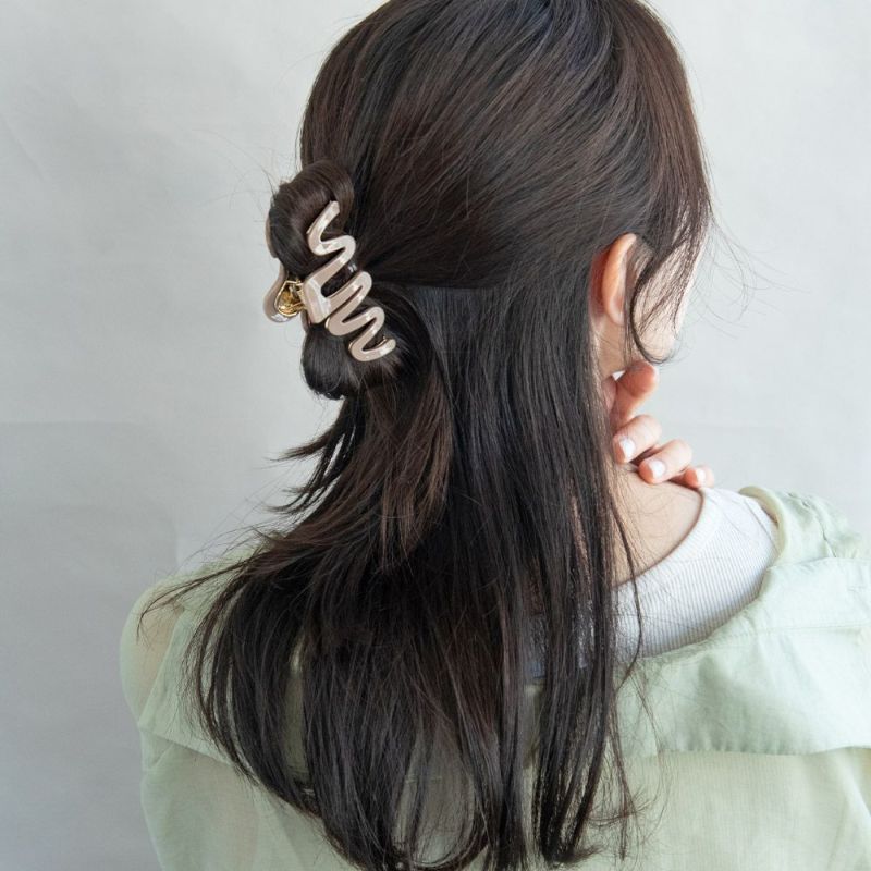bs0556アートなうねうねデザインのバンスクリップは、ゆるさがあってかわいい。ざっくりまとめて留めるだけ、おしゃれな韓国風アレンジが叶うジッケピン。