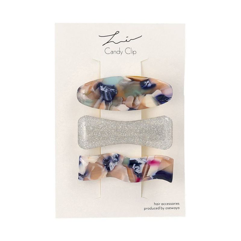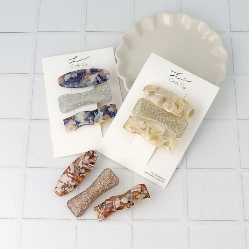 ヘアクリップ Candy Clip マルチシェイプ ラメ マーブル アクリル 3個セット ミニクリップ