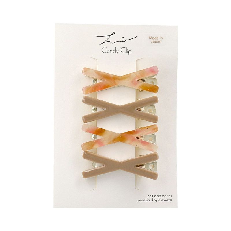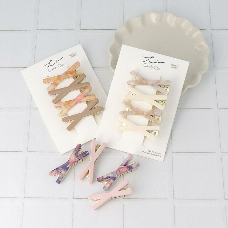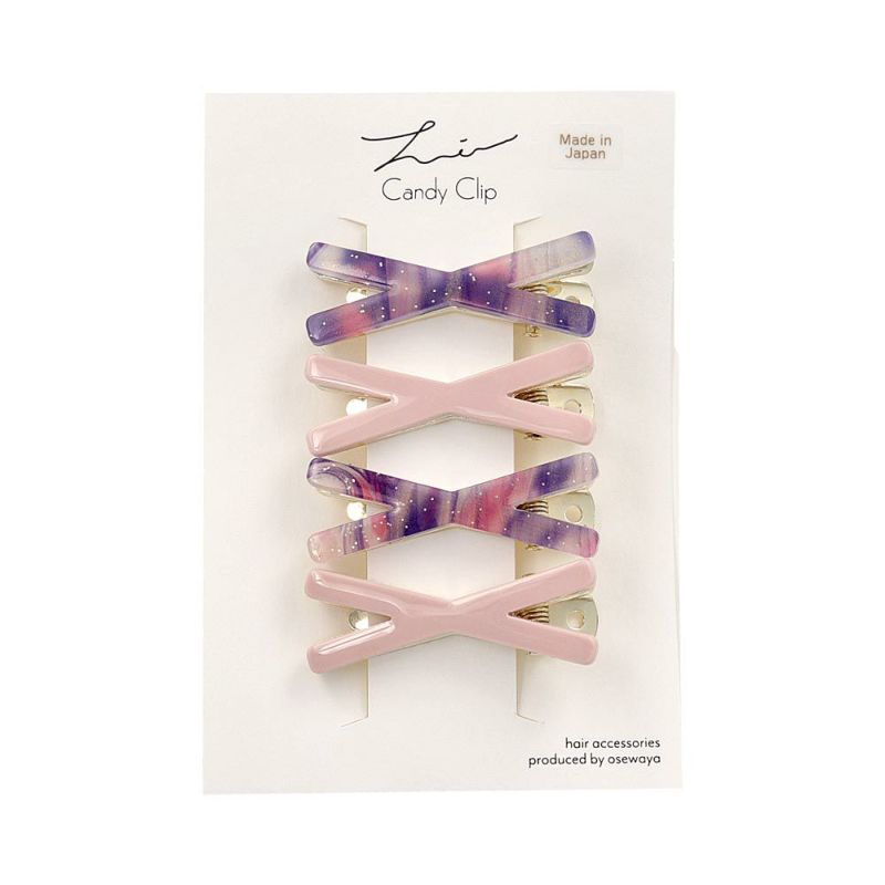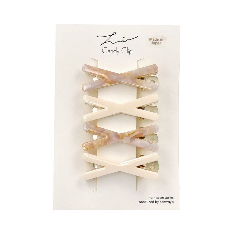 ヘアクリップ Candy Clip クロスシェイプ ラメ マーブル アクリル 4個セット ミニクリップ