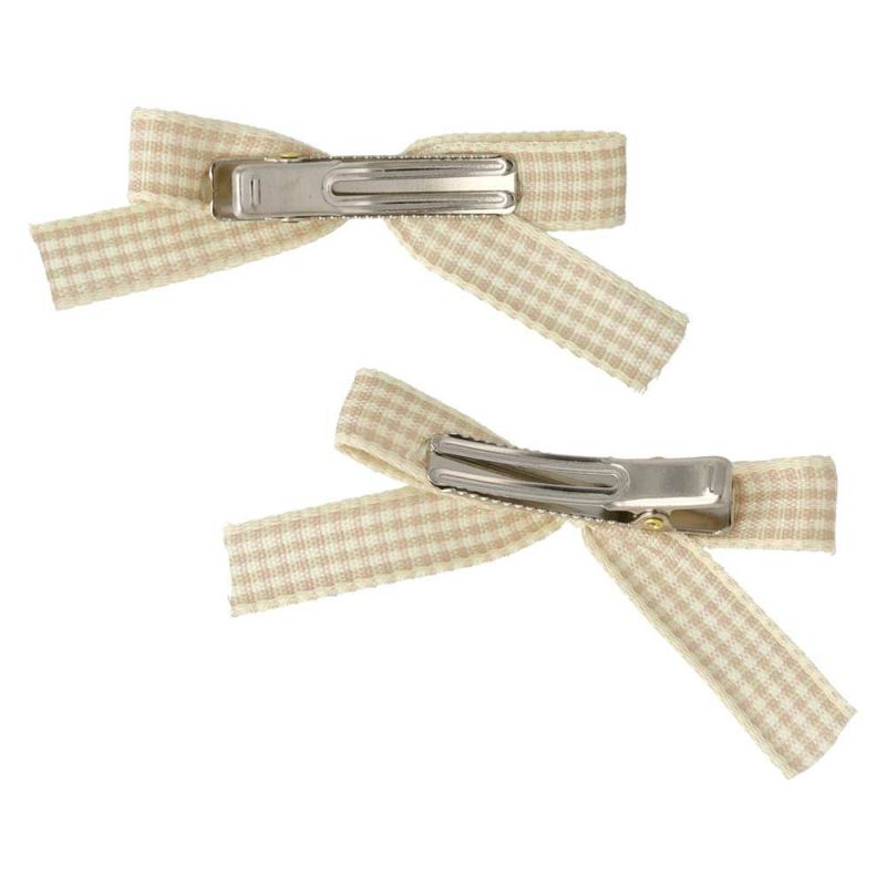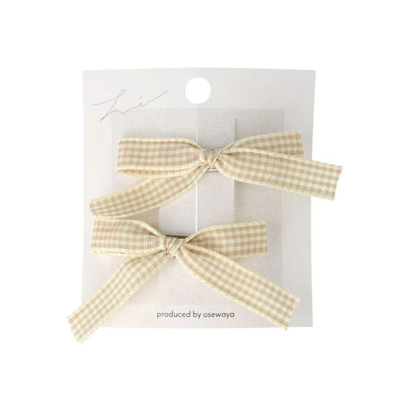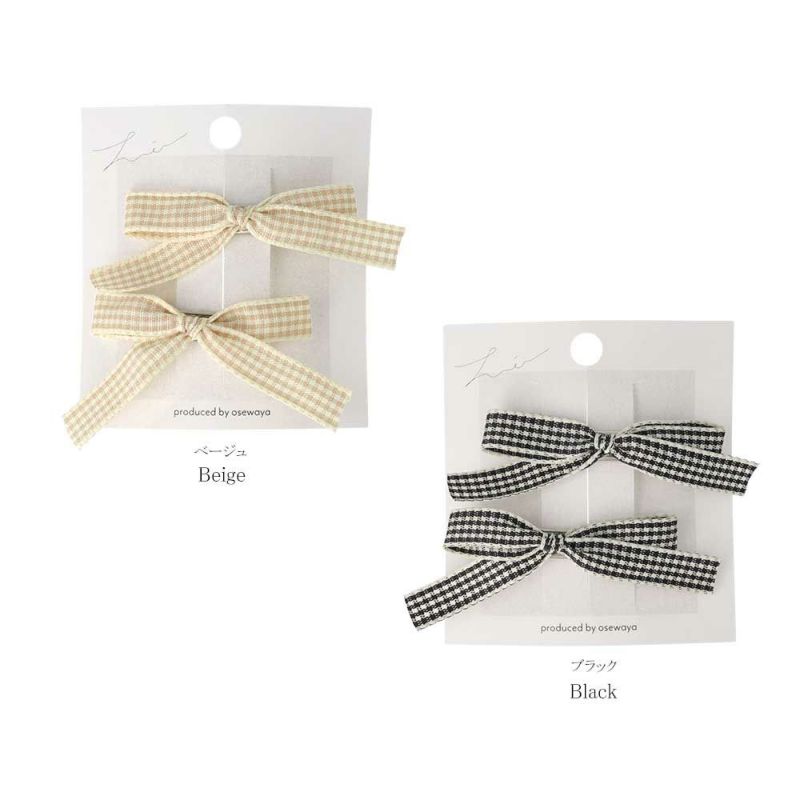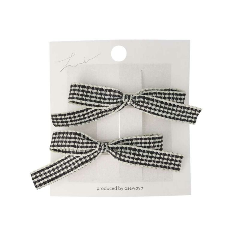 ヘアクリップ チェック リボン 2個セット ミニクリップ