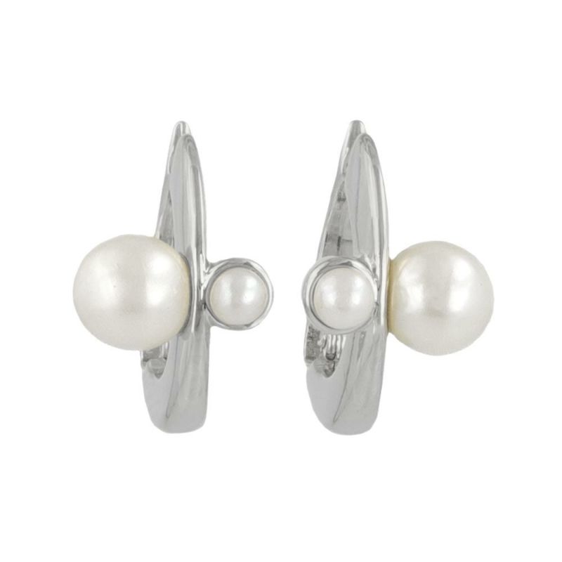イヤリング ニッケルフリー ダブル パール メタル クラッチイヤリング フープイヤリング