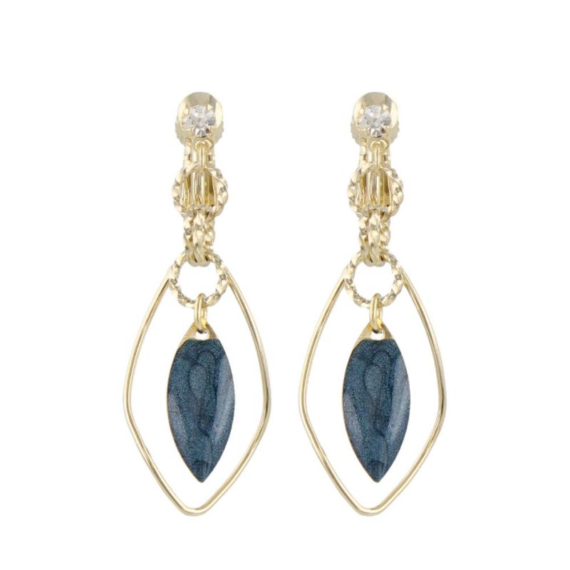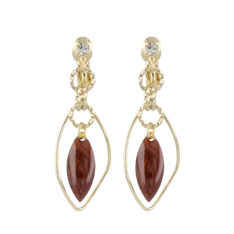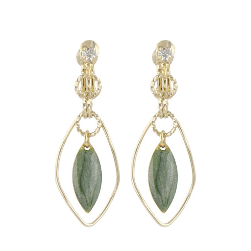 イヤリング ニッケルフリー カラー エポ ストーン リーフ ツイスト リング メタル ネジバネ式イヤリング
