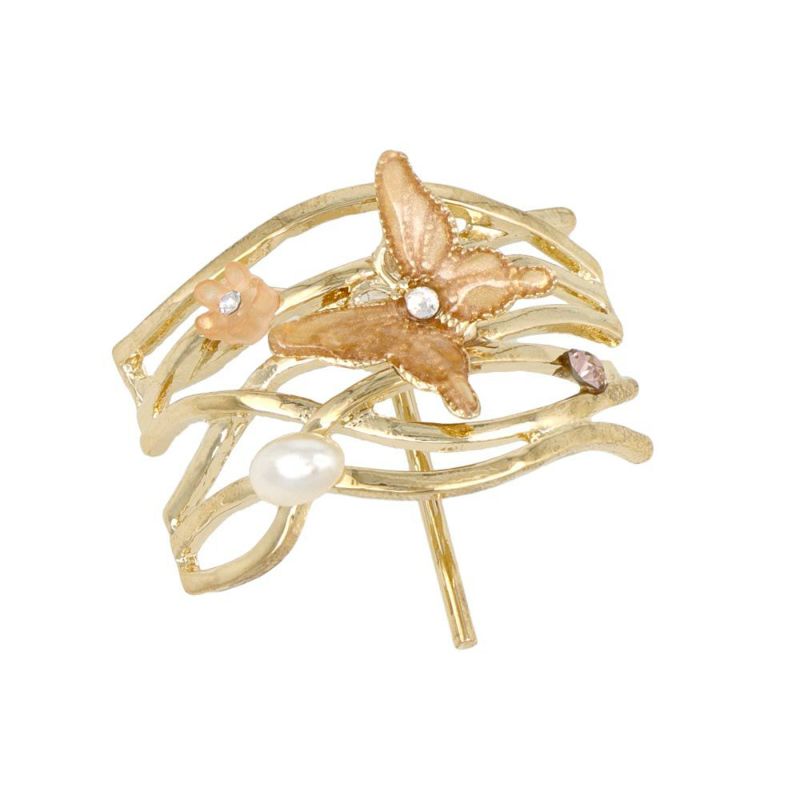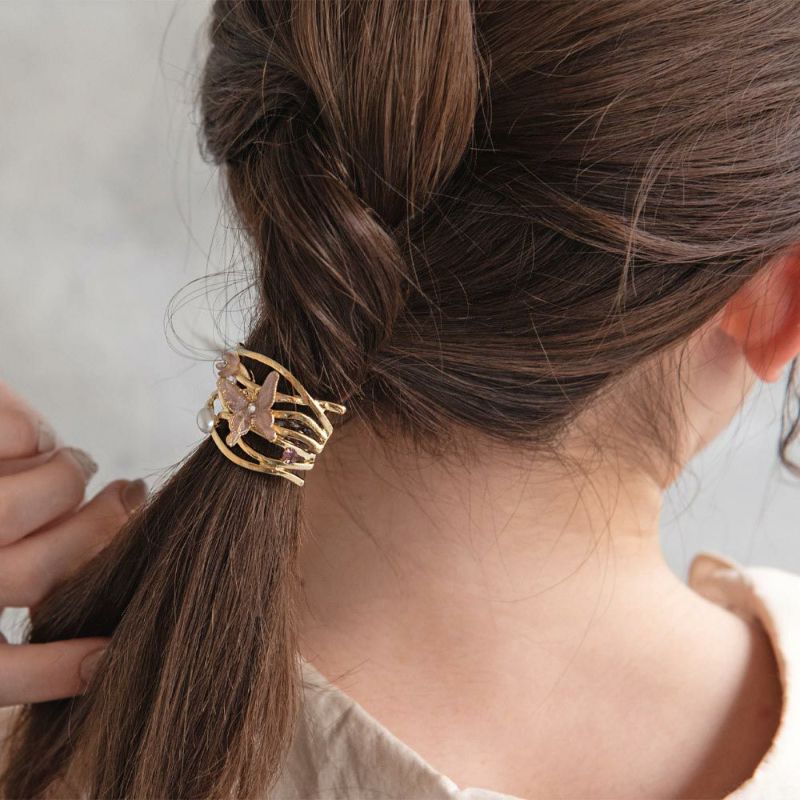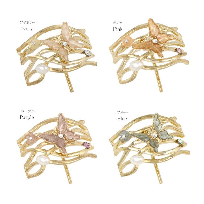 ヘアカフ 蝶 バタフライ フラワー ストーン パール メタル ヘアポニー ポニーフック