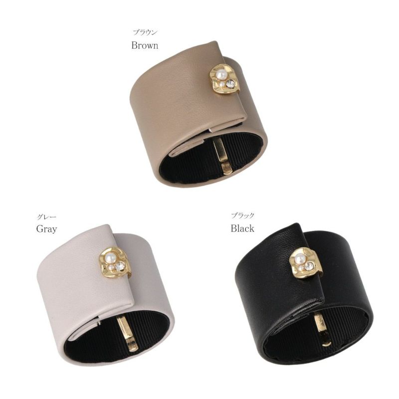 ヘアカフ レザー風 メタル プラパール ストーン ベーシックカラー クラップカフ ポニーフック
