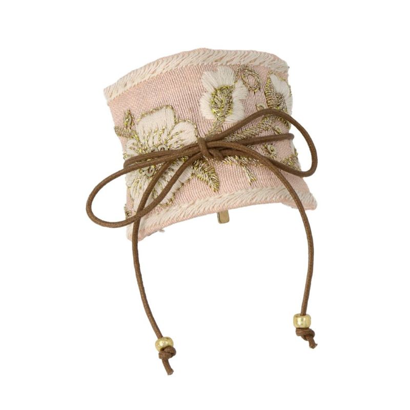 お花の刺繍が綺麗なヘアカフは、ラップリボン風のデザインで簡単に旬のアレンジが叶います。