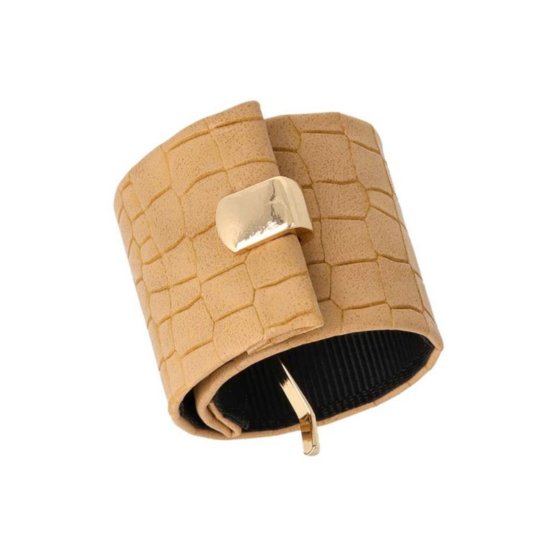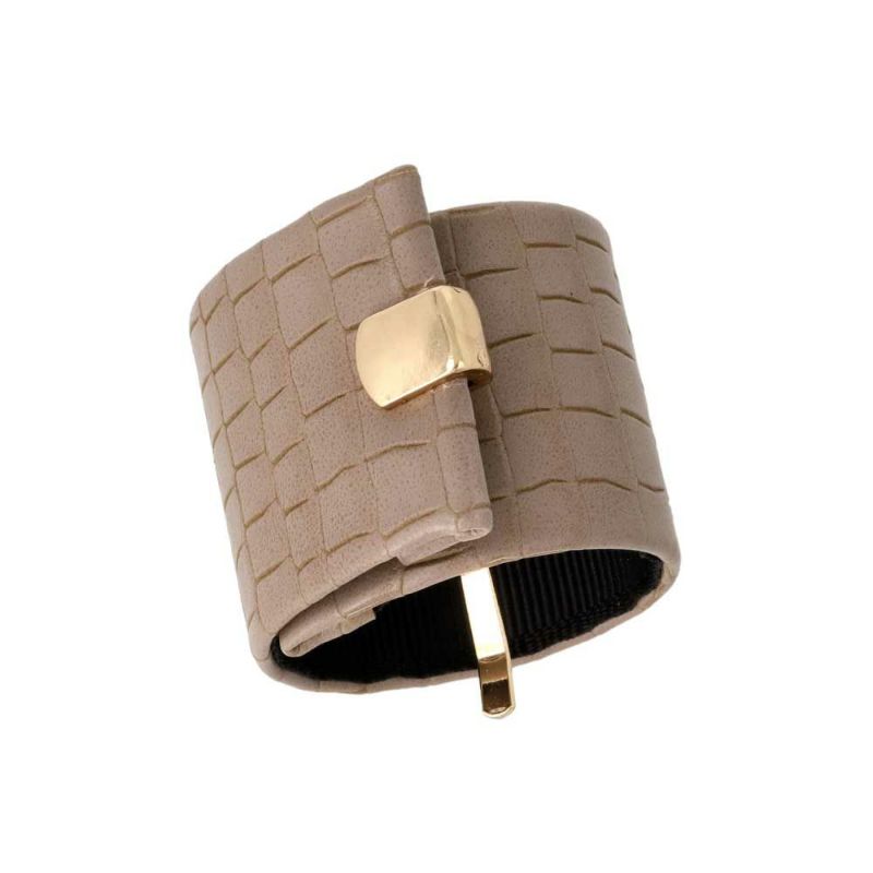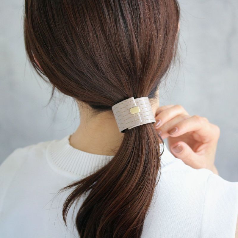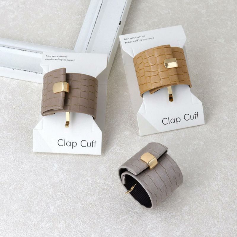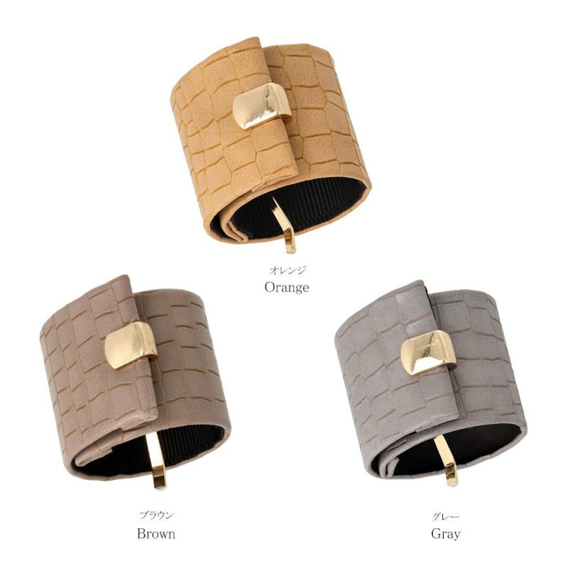 ヘアカフ フェイクレザー クロコダイル風 メタル クラップカフ ヘアポニー ポニーフック