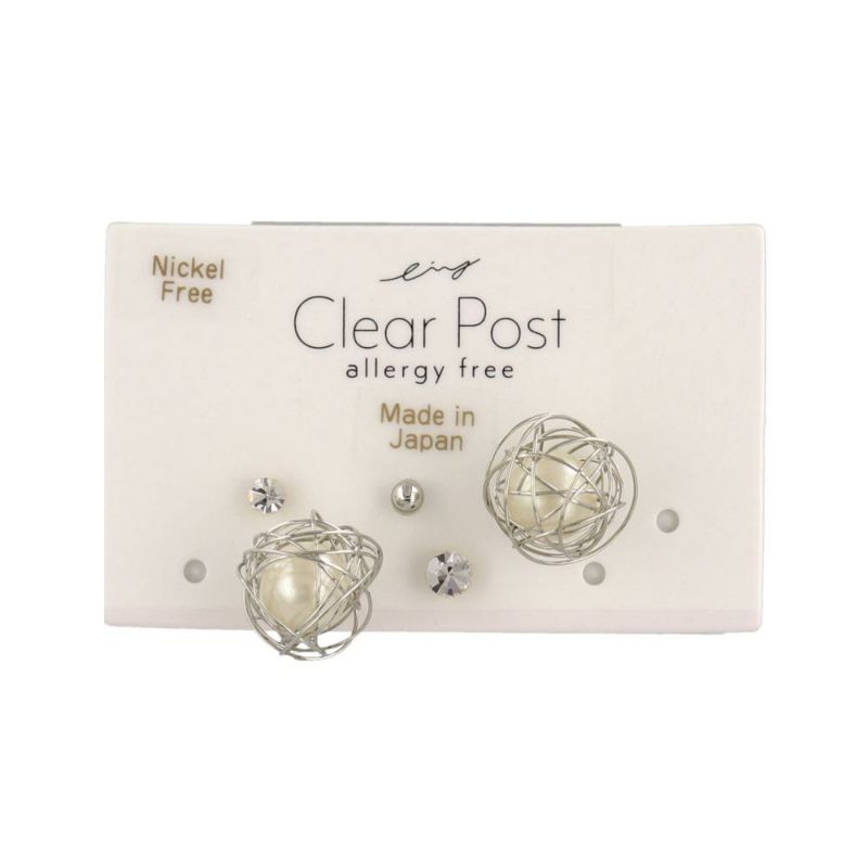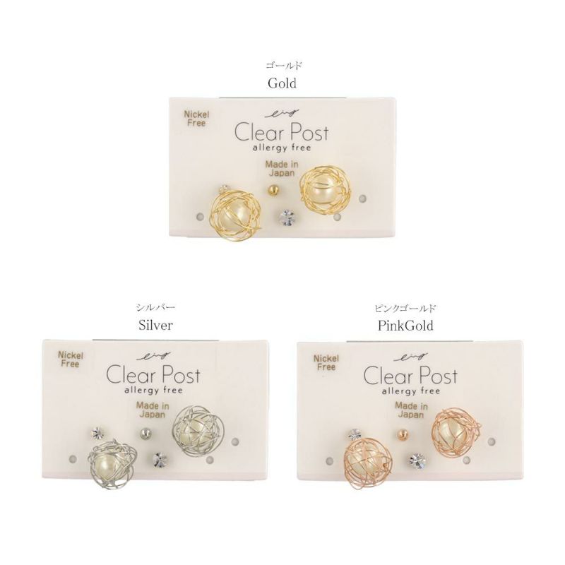 樹脂ピアス ニッケルフリー ワイヤー ボール パール ストーン 5個 スタッドピアス